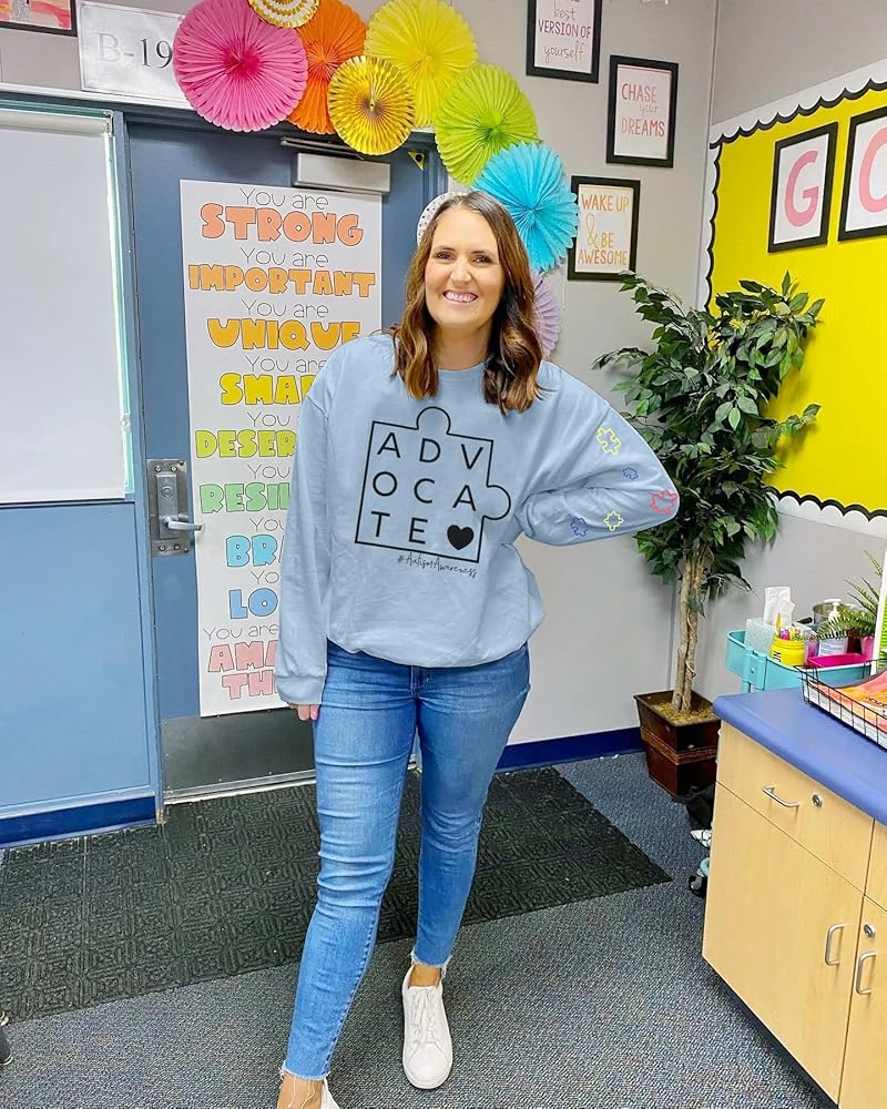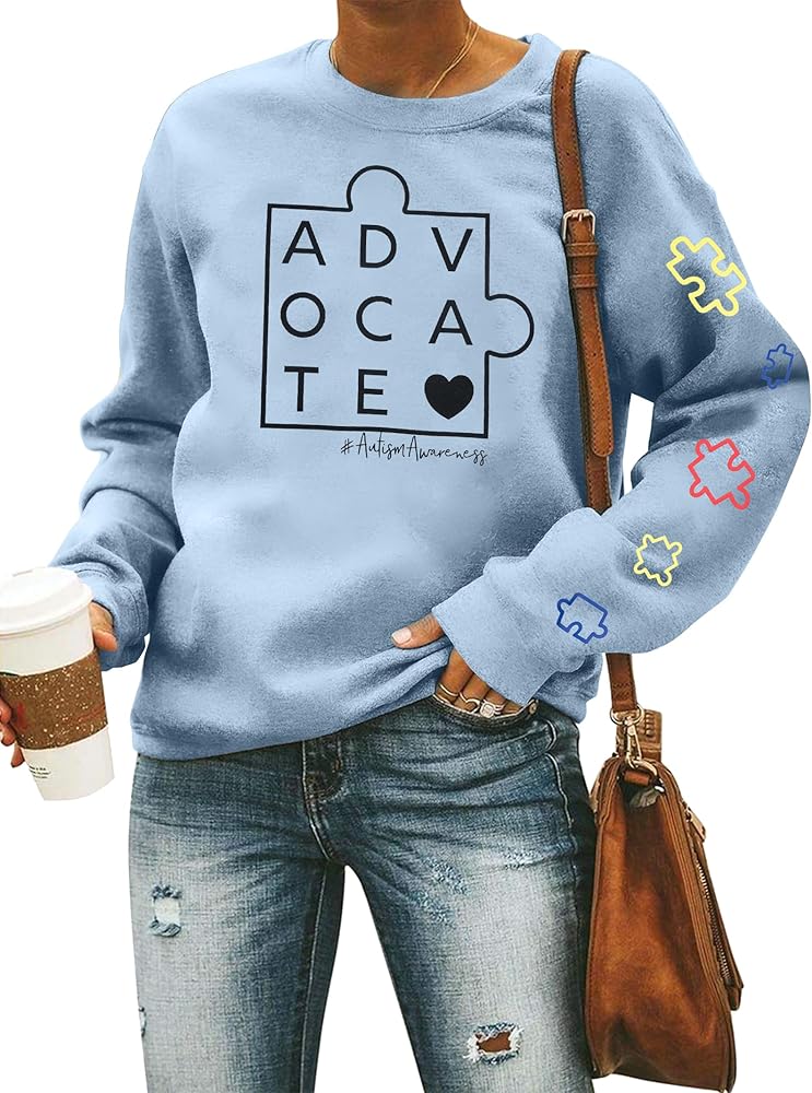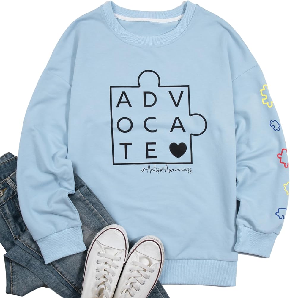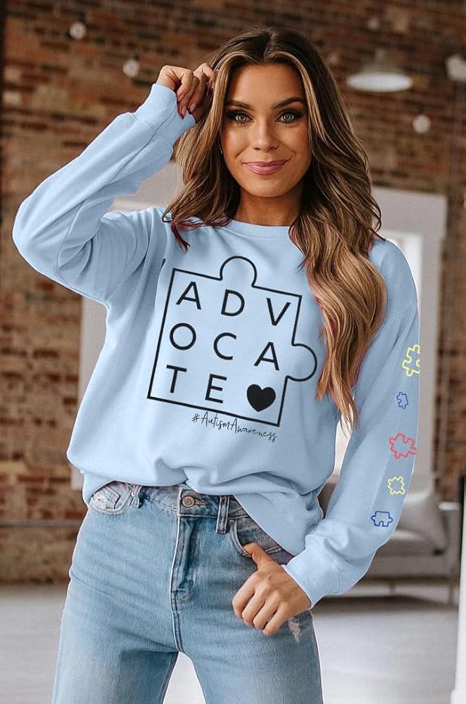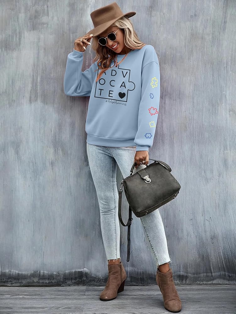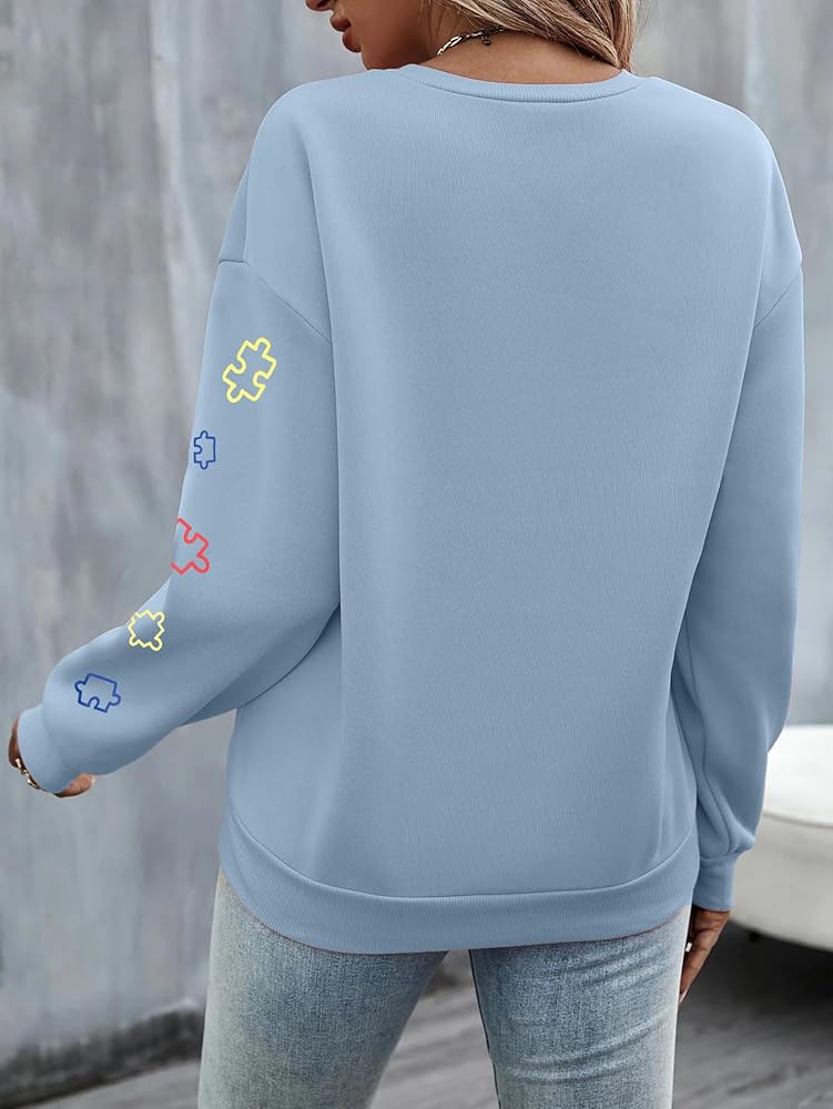 Autism Sweatshirts for Women Cute Puzzle Piece Graphic Long Sleeve Shirts