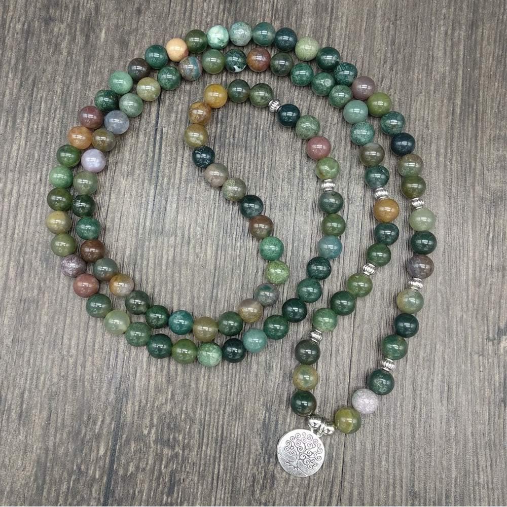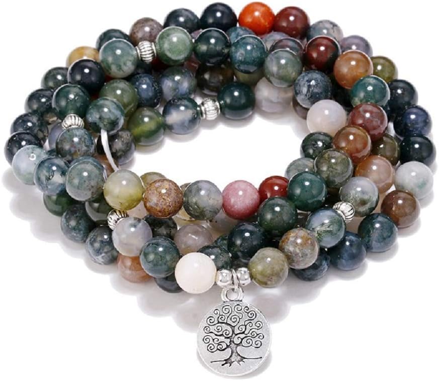 مصنوعة يدوياً بحب - هذه المجوهرات الرائعة تمت معالجتها بخرز من الحجر الطبيعي ومجهزة بعناية بقطع زينة وإكسسوارات شجرة الحياة. كل مالا مصنوعة يدويًا بعناية من قبل الحرفيين وبالتالي تظهر المزيد من الخصائص الطبيعية. يمكن استخدامه كقلادة طويلة أو سوار لفة.