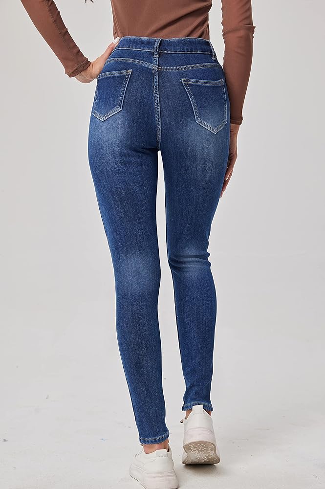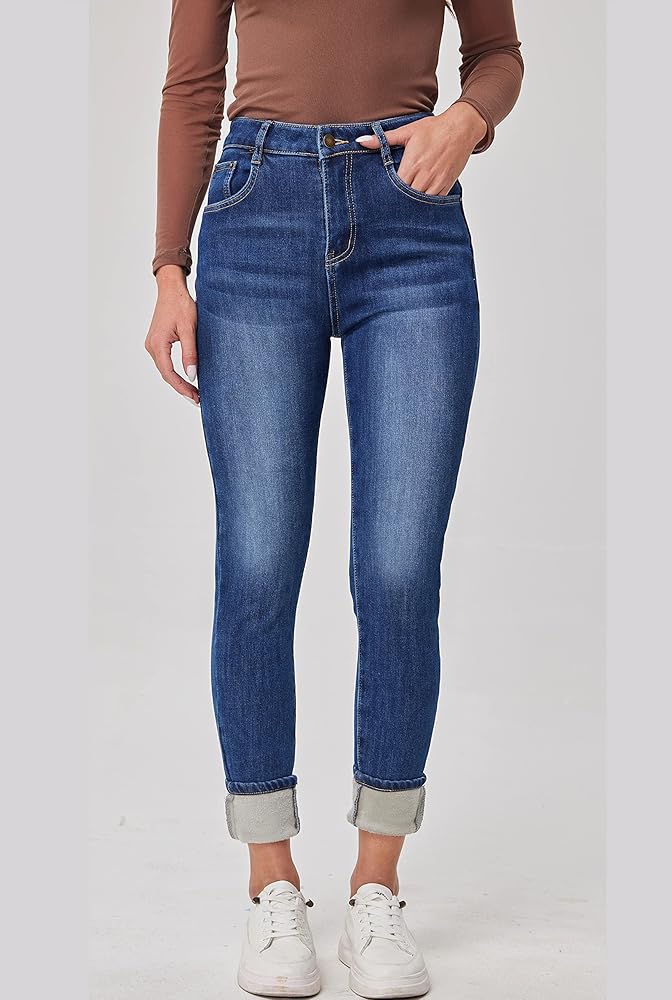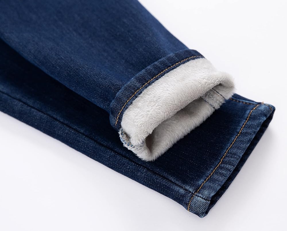 بنطال حراري نسائي، جينز بجيوب حقيقية، سحاب لأعلى مع أزرار/سحب على الخصر المطاطي للإغلاق للاختيار