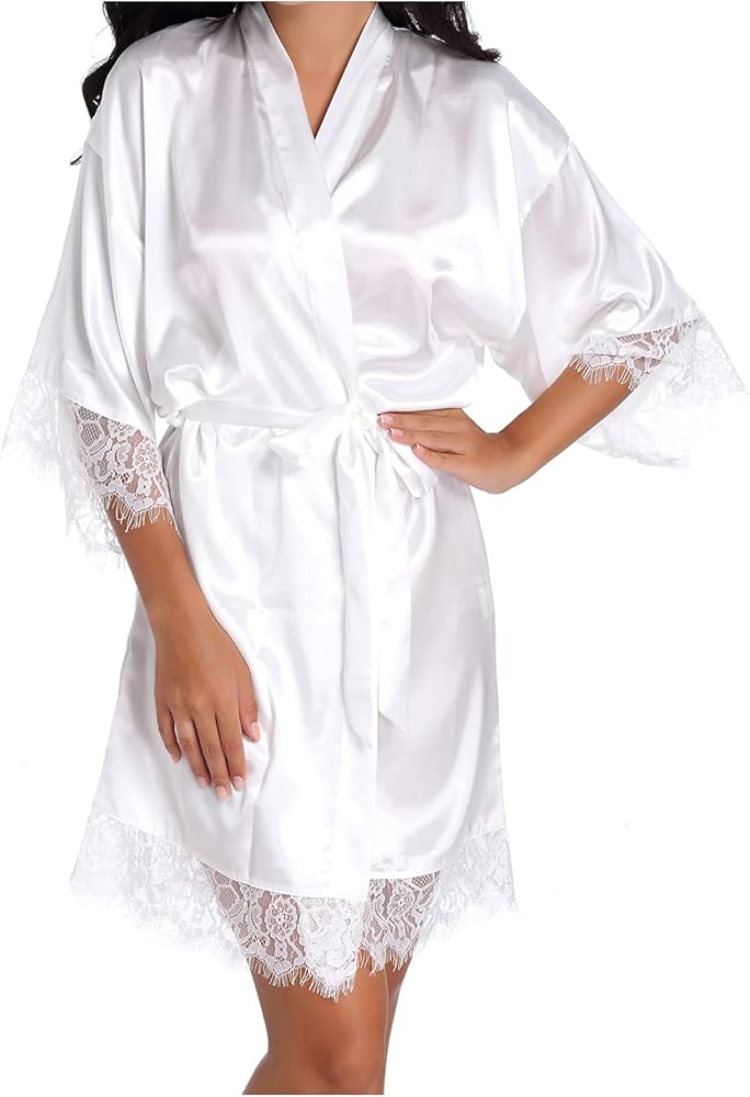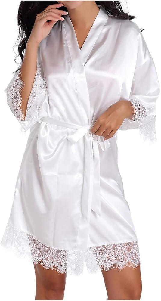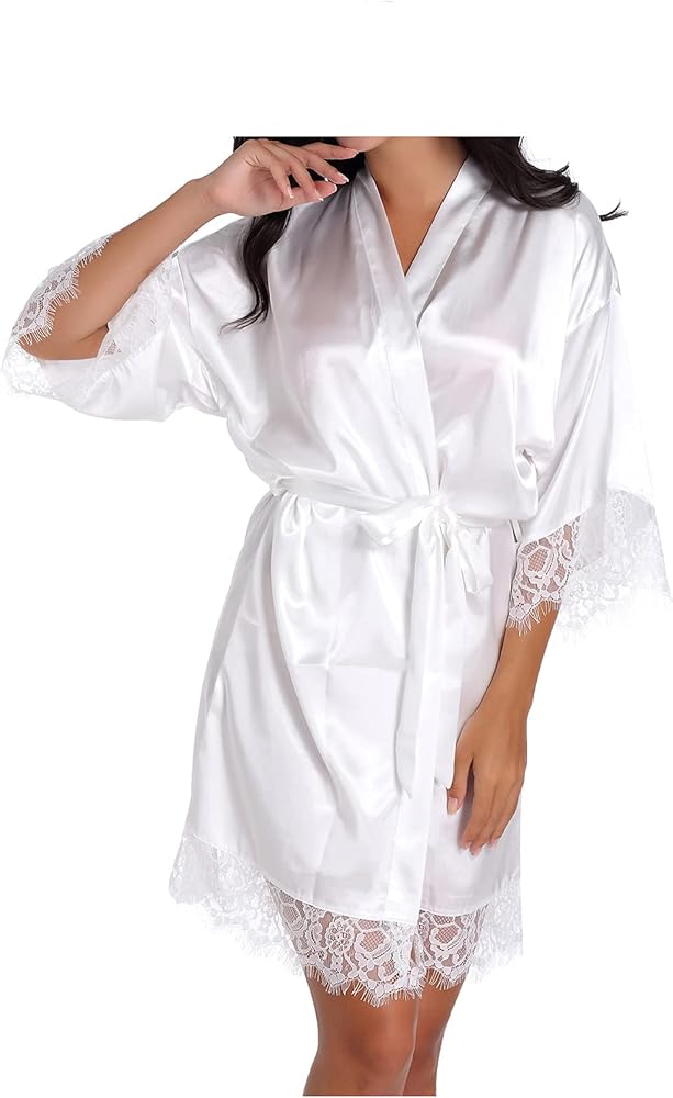 - روب للعروس بأكمام قصيرة رداء حمام رقيق من الحرير رداء نوم فضفاض بلون سادة.