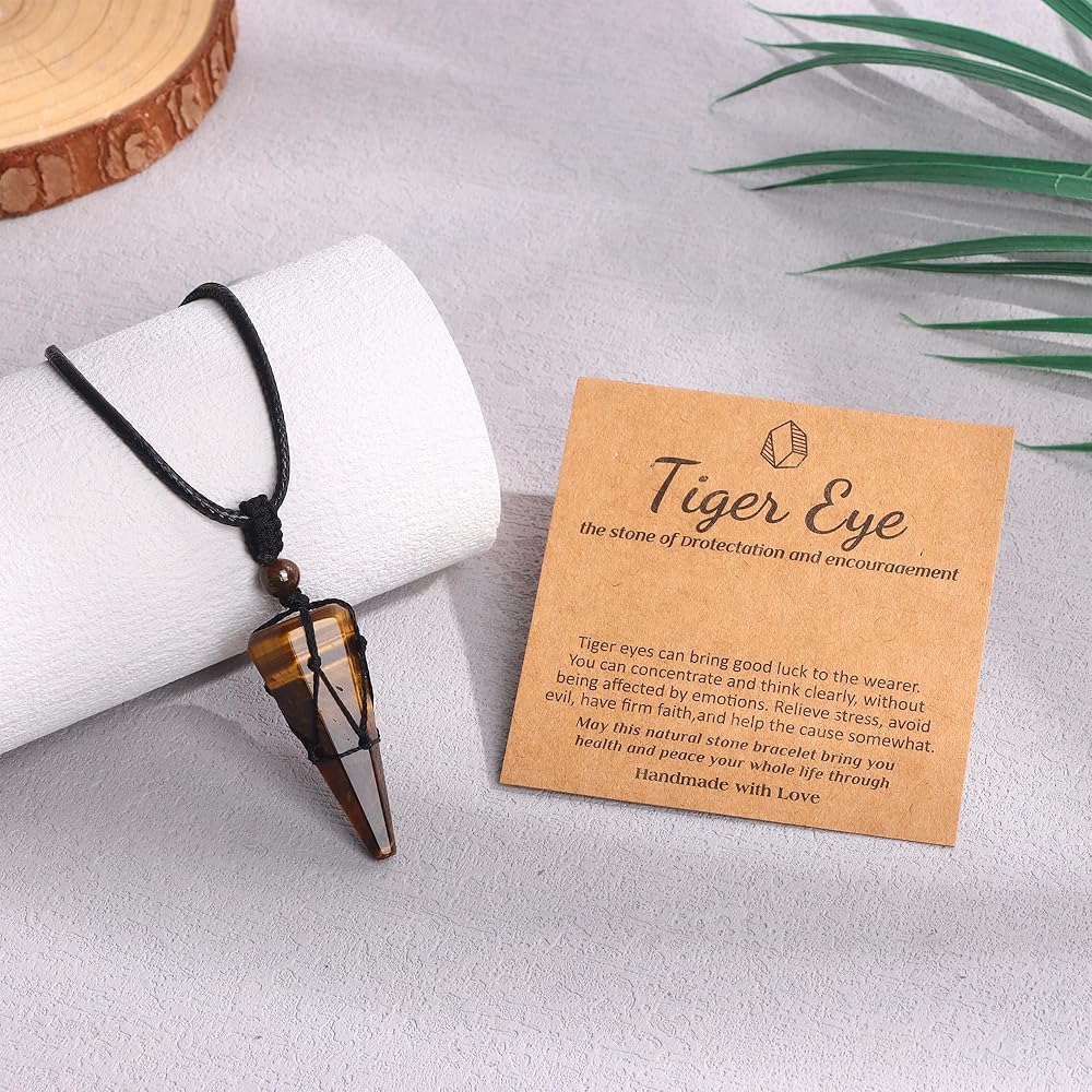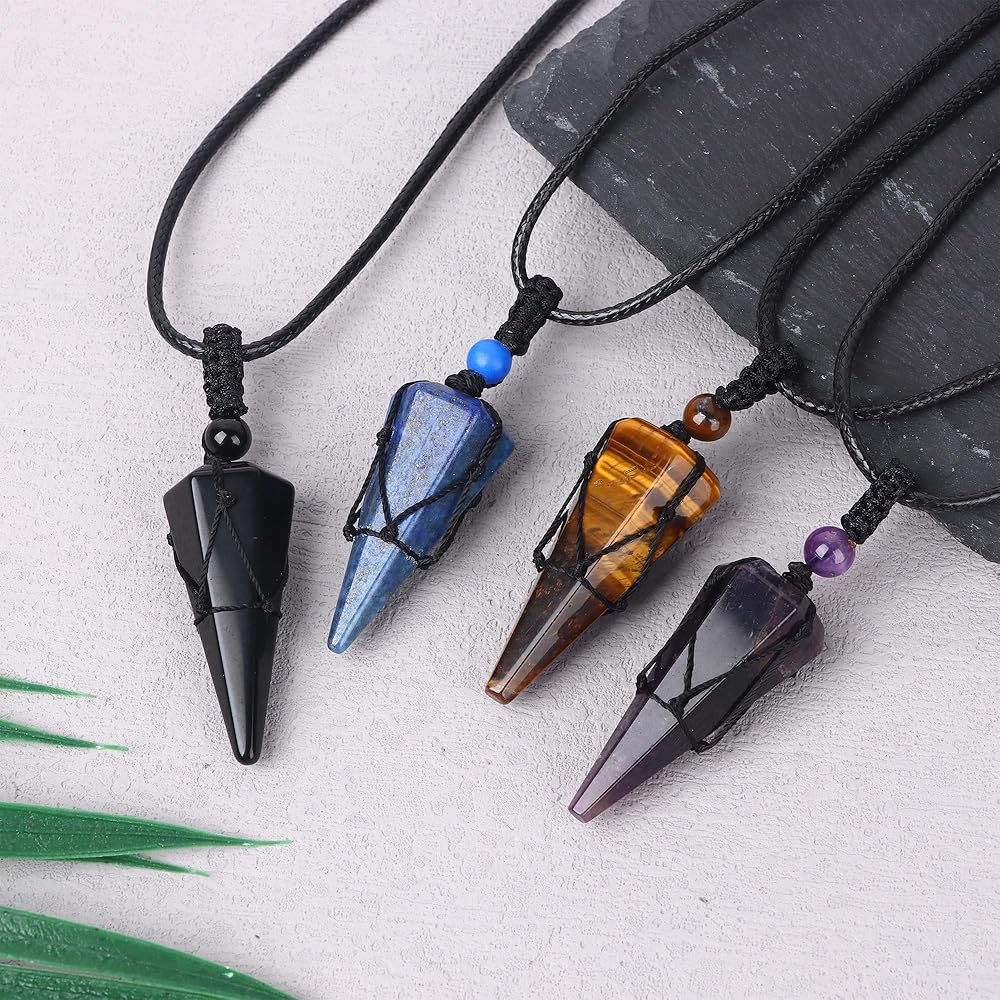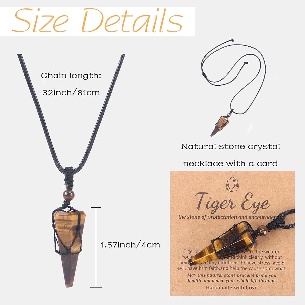 【تصميم قلادة كريستالية】: قلادة من الكريستال الطبيعي بطول يصل إلى 32 بوصة (قابل للتعديل). مقاس القلادة المدببة الكريستالية: 1.57*0.7 بوصة. يسمح الحبل المضفر بتعديل الطول بشكل مريح، مما يجعله مناسبًا للرجال والنساء من جميع الأحجام.