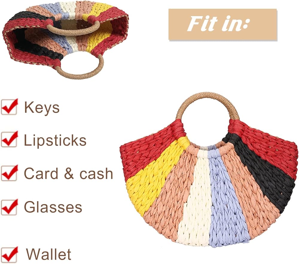 ★ سعة كبيرة: كبيرة بما يكفي لحقيبتك وهاتفك الخلوي والماكياج والمناديل وما إلى ذلك. ولكن حقائب القش لا يمكنها تحمل الكثير من الوزن.
