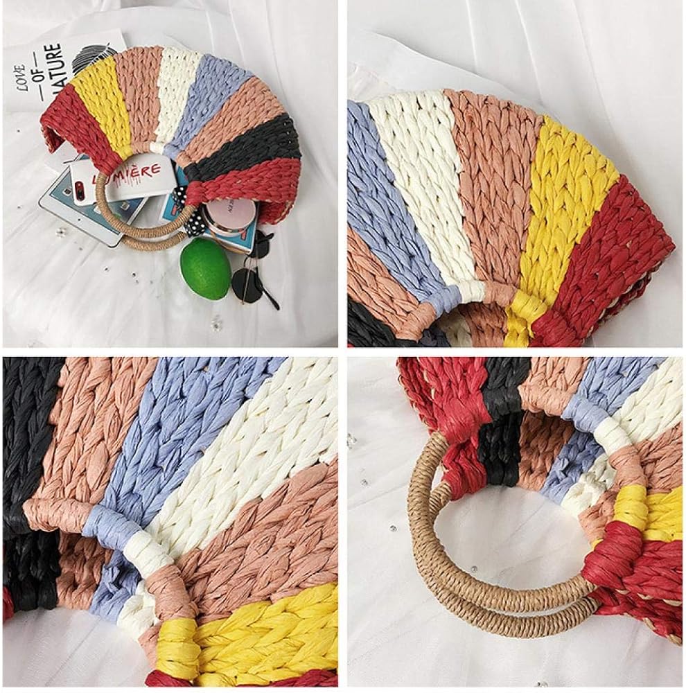 ★★التصميم: إغلاق مغناطيسي. حقيبة من الروطان والشفاطة طبيعية ومصنوعة يدويًا؛ سطح قش ملون رائع، بطانة قطنية، إغلاق مغناطيسي من الجلد العلوي، حزام كتف قابل للإزالة، فريد وأنيق.