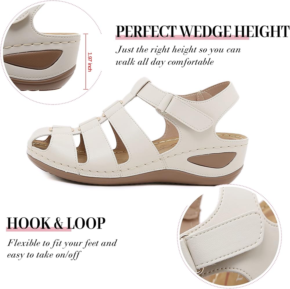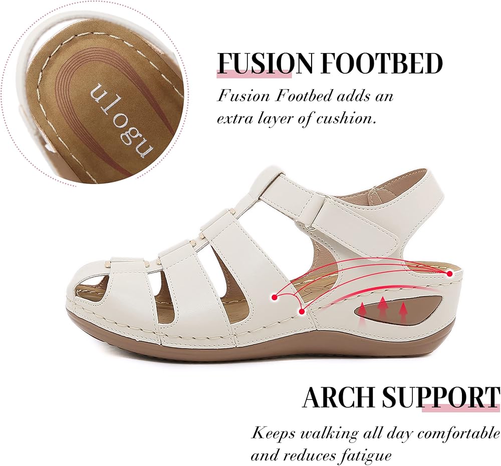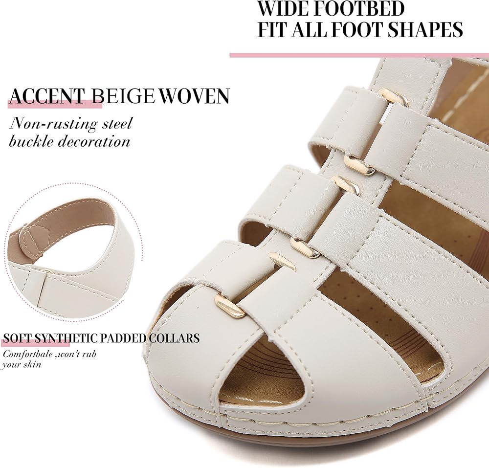 خطاف وحلقة - هذه الصنادل النسائية ذات المقدمة المغلقة مع إغلاق فيلكرو، ستكون أكثر مرونة لتناسب قدميك وسهلة الارتداء والخلع.