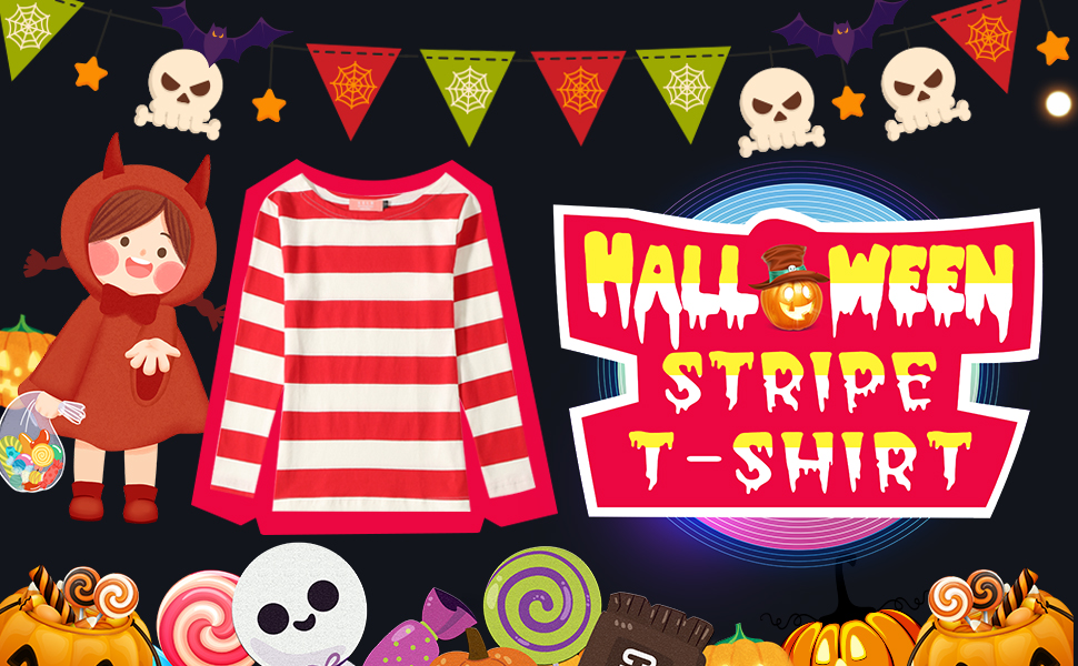 يجب أن يكون لديك عيد الهالوين المفضل: عيد الهالوين قاب قوسين أو أدنى، وسوف تحتاج بالتأكيد إلى هذه القمصان المخططة ذات الأكمام الطويلة للفتيات. تصميم طويل الأكمام، ثم يطابق قبعة الهالوين الحمراء والبيضاء الخاصة بنا، لذا فهي دافئة وكاجوال، واستمتع بالبهجة والحرية في ليلة الهالوين.