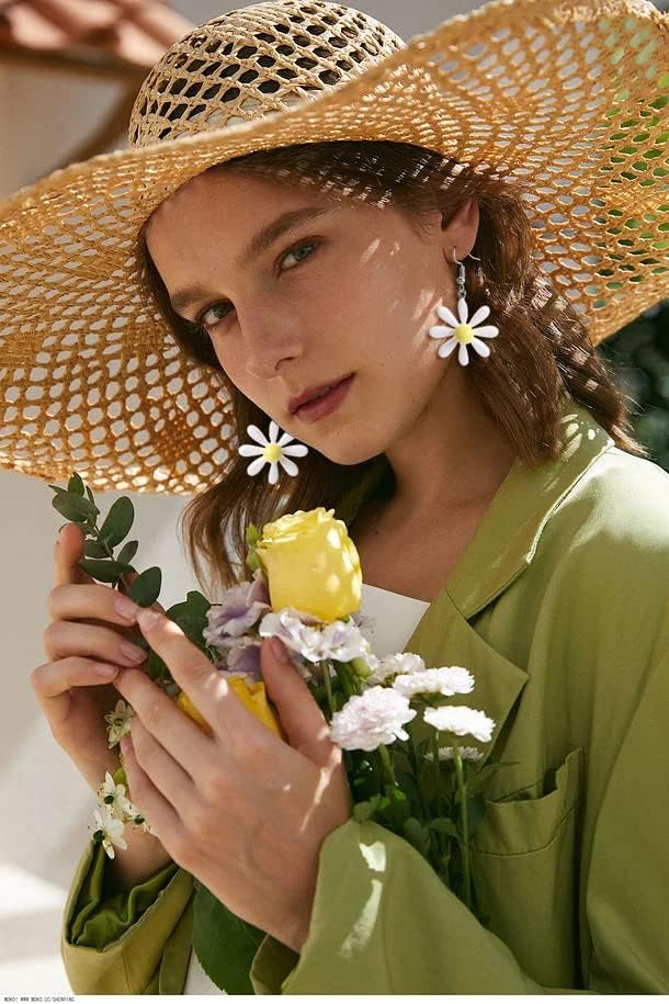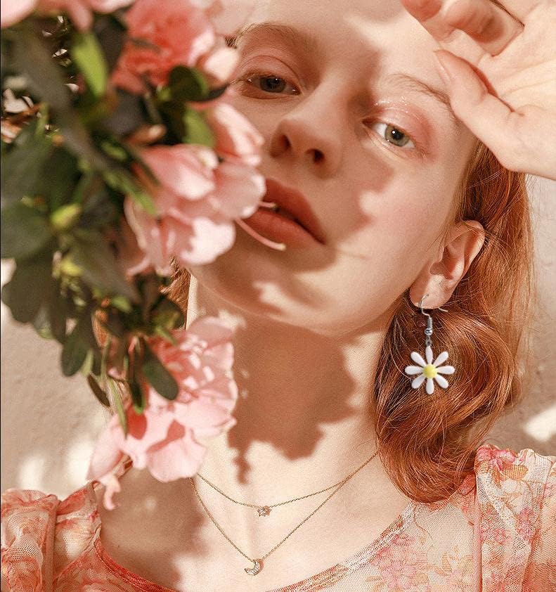 WLLAY Daisy Earrings for Women Cute Daisy Flower Dangle Earrings White Yellow Sunflower Floral Earrings Jewelry for Girls