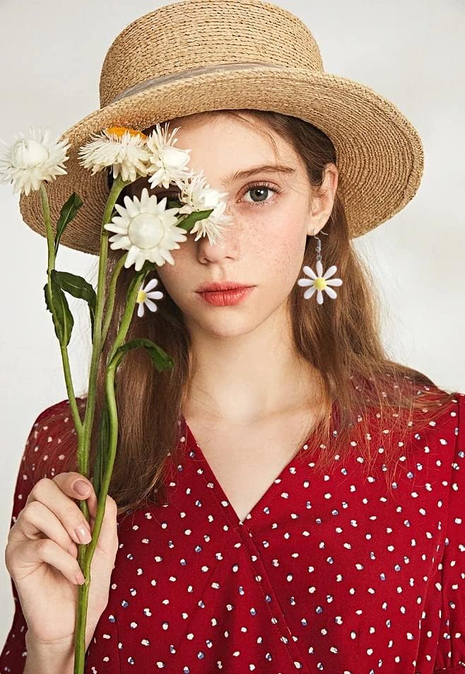 • ♛MATERIAL:Alloy/Acrylic/Enamel;Cute Chrysanthemum Daisy Dangle Earrings for Girls Teens