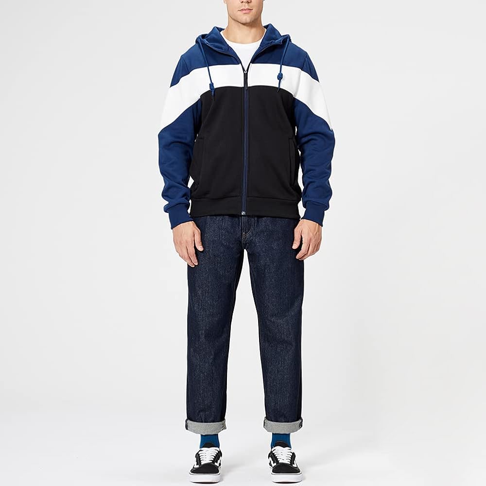 • سترة ذات قلنسوة ملونة: تتميز السترة ذات القلنسوة للرجال بمظهر أنيق. تصميم مبتكر بخياطة متباينة، مطابقة الألوان وتصميم بغطاء للرأس برباط يجعل الملابس تبدو عصرية جدًا. السحاب الأمامي الكامل مريح في الارتداء والخلع، وجيوب مزدوجة، وحاشية مضلعة وأساور أكمام للحفاظ على الدفء. القماش مسامي ودافئ، سترة مريحة في الربيع والخريف والشتاء.