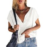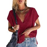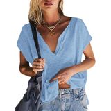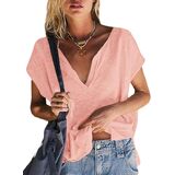 خفيفة الوزن - قمصان علوية برقبة على شكل حرف V للسيدات مصنوعة من نسيج ناعم ومريح وجيد التهوية، وهي قطعة أساسية أنيقة متعددة الاستخدامات في خزانة الملابس والتي تنتقل من طبقات الربيع إلى الصيف بسهولة.