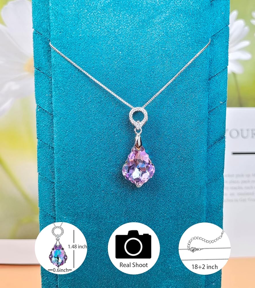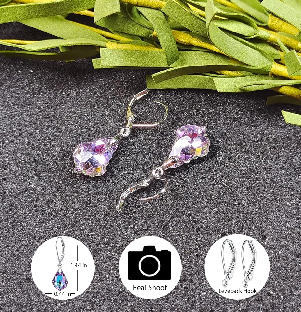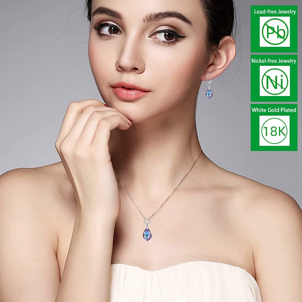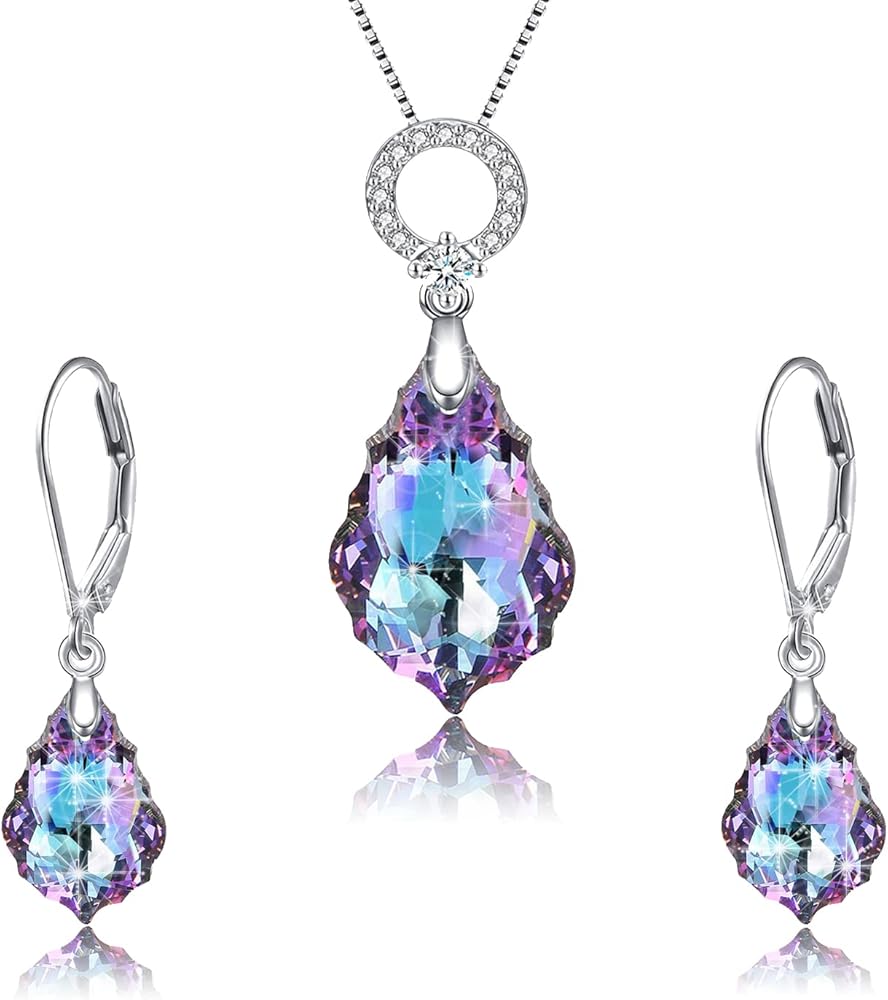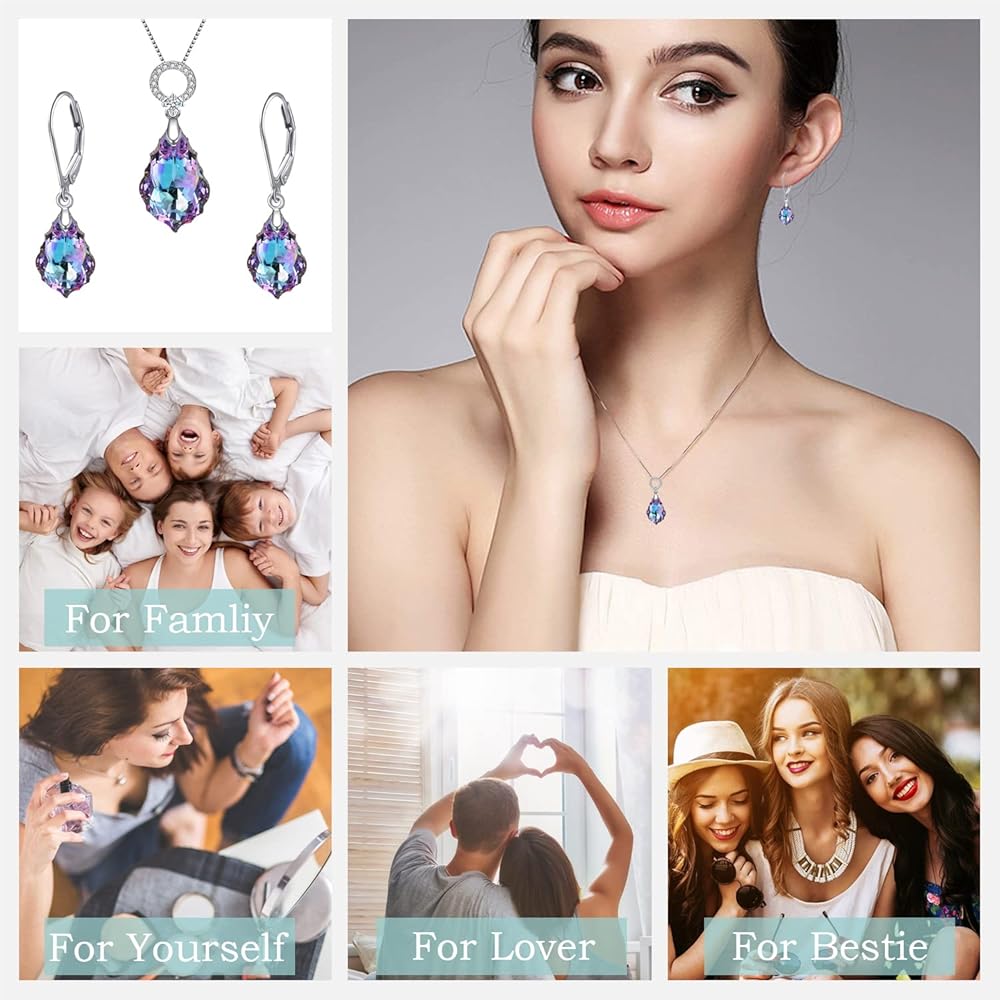 Purple Women's Crystal Jewelry Set,Heart Baroque Teardrop Crystal, Necklace and Earrings Collection,Vitrail Light Crystals from Austria,Dangle Earrings For Women Hypoallergenic Jewelry GIFT