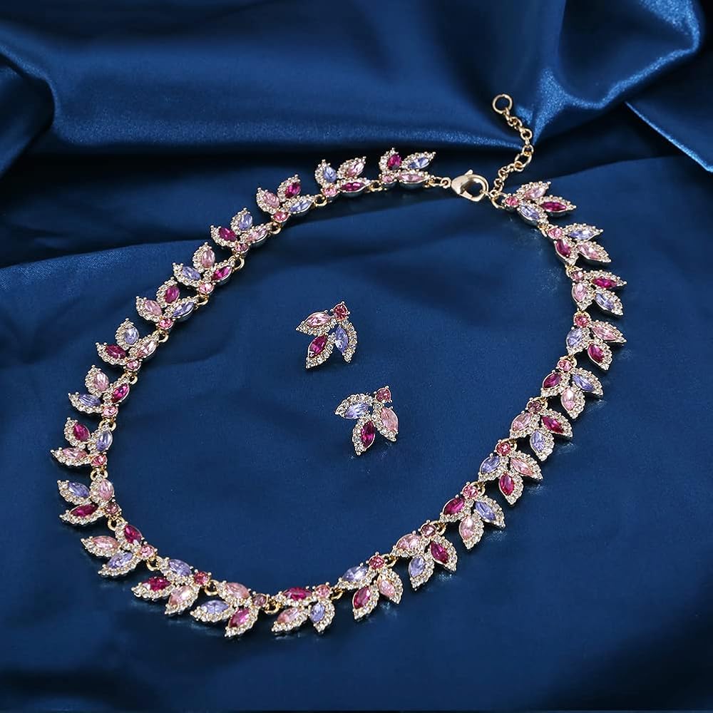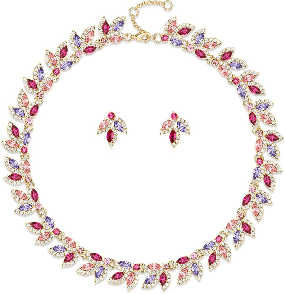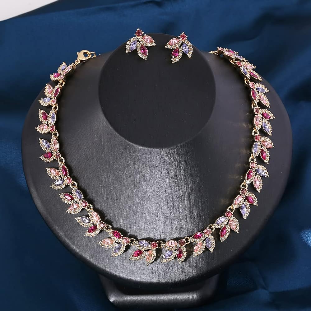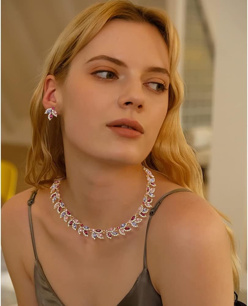 هدية مجموعة المجوهرات النسائية: مجموعة قلادة وأقراط العروس هذه ذات الألوان الزاهية وعالية الجودة معبأة في صندوق جميل جيدًا، وهي اختيار هدية مثالي لصديقاتك أو زوجتك أو أصدقائك أو لنفسك كذكرى سنوية أو تخرج أو أعياد الميلاد أو الهالوين أو الكريسماس هدايا العيد.