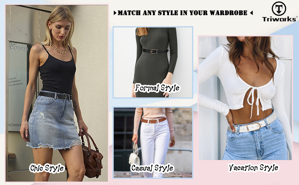✿ مناسبة لمعظم الملابس: سواء كان الجينز أو البنطلون أو الفساتين أو المعاطف، فإن أحزمة البولي يوريثان هذه مناسبة لمعظم الملابس. الألوان الكلاسيكية (أسود، بني، أبيض) لن تخرج عن الموضة أبدًا. أي مناسبة مثالية، مثل اليومية، والتاريخ، والحفلات، وما إلى ذلك.