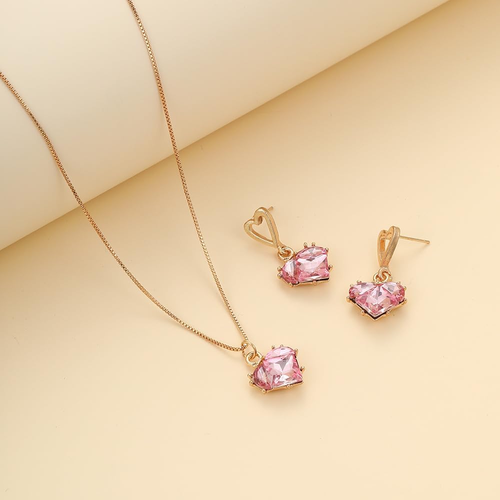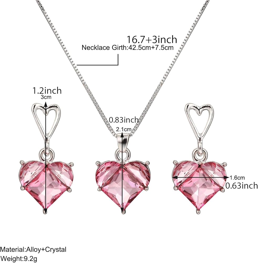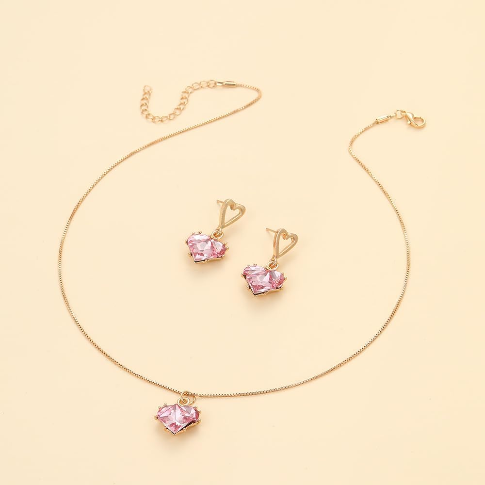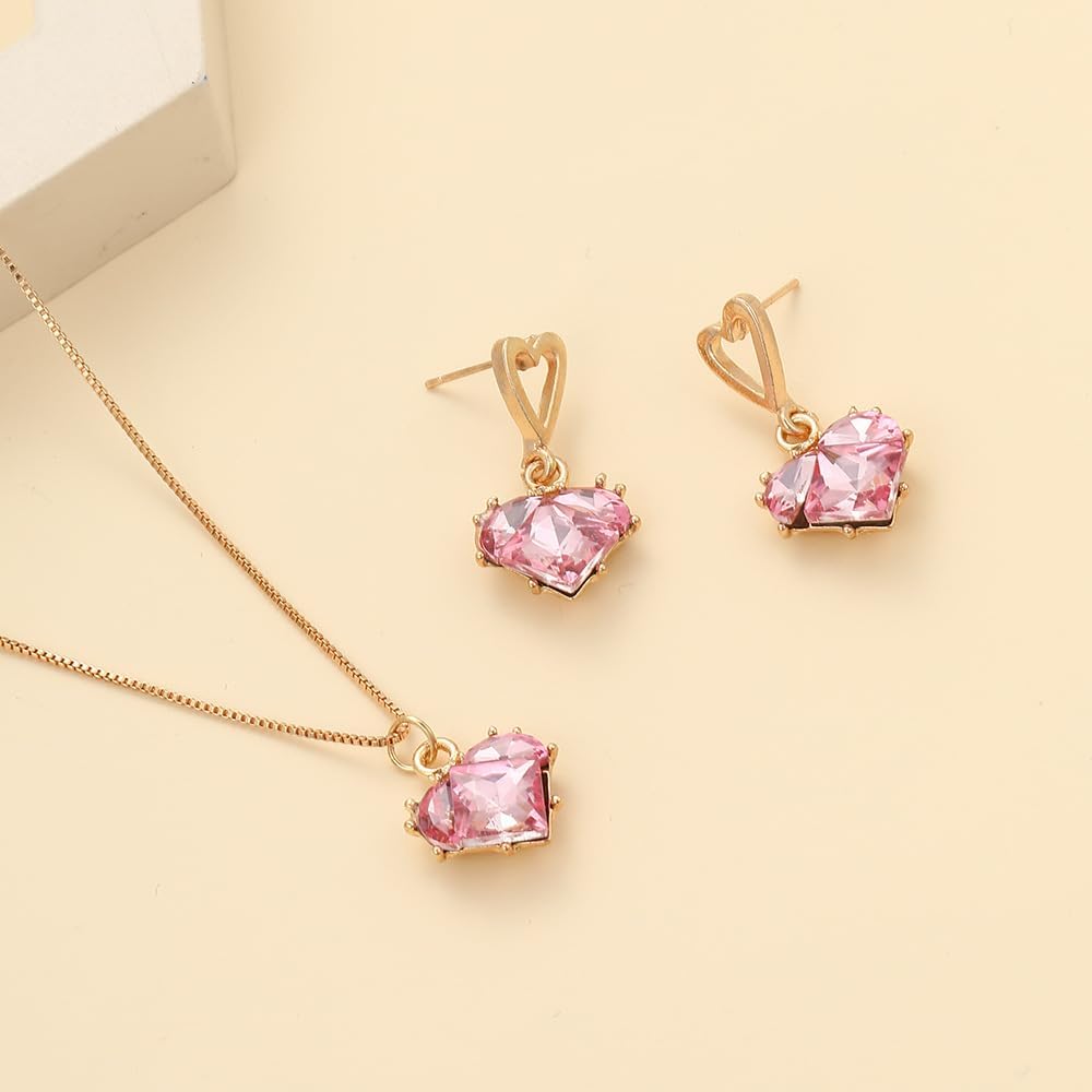 Glamorous Y2K Aesthetics: Embrace the Y2K trend with this heart-shaped pink crystal jewelry set, exuding elegance and charm.