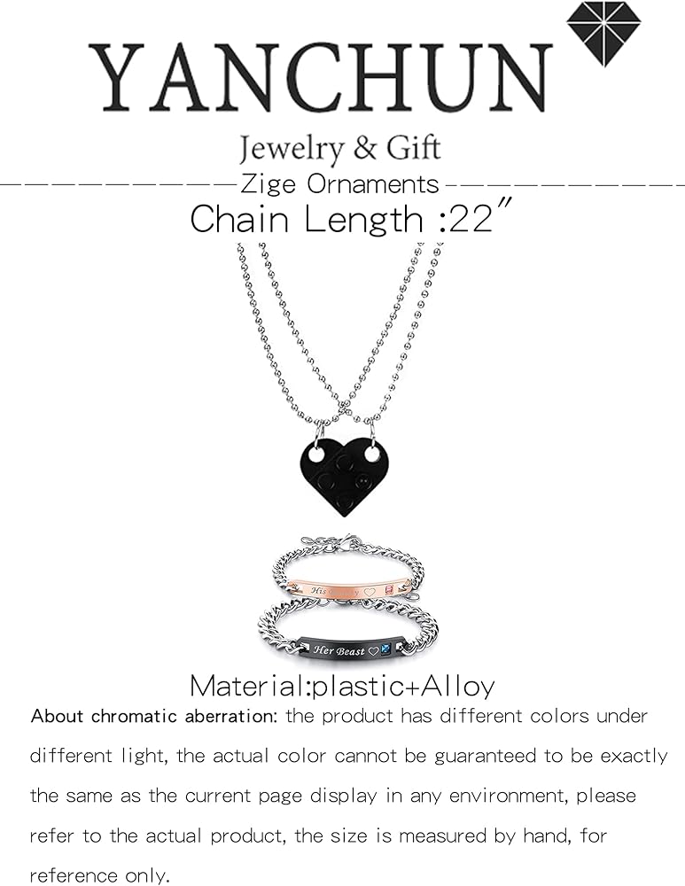 ✦ أساور قلادات متطابقة للأزواج✦: ستحصل على قطعتين من قلادات الأزواج وقطعتين من سوار الأزواج، كمية كافية لارتدائها في حياتك اليومية أو الحفلات، كما يمكنك مشاركتها مع أصدقائك وأفراد عائلتك وأحبائك.