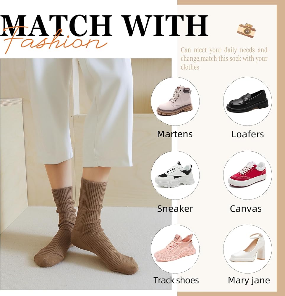 مريحة: تم تصميم الجوارب النسائية لدينا لتكون كاجوال وسهلة الارتداء، مع السُمك المناسب للارتداء على مدار العام. يمكنك ارتداء جواربنا المترهلة للنساء والفتيات المراهقات والرجال والأولاد المراهقين، وتتماشى بسهولة مع الأحذية الرياضية والأحذية بدون كعب والأحذية طويلة الرقبة والقماش... جوارب الربيع، والجوارب الصيفية، وجوارب الخريف، والجوارب الشتوية.