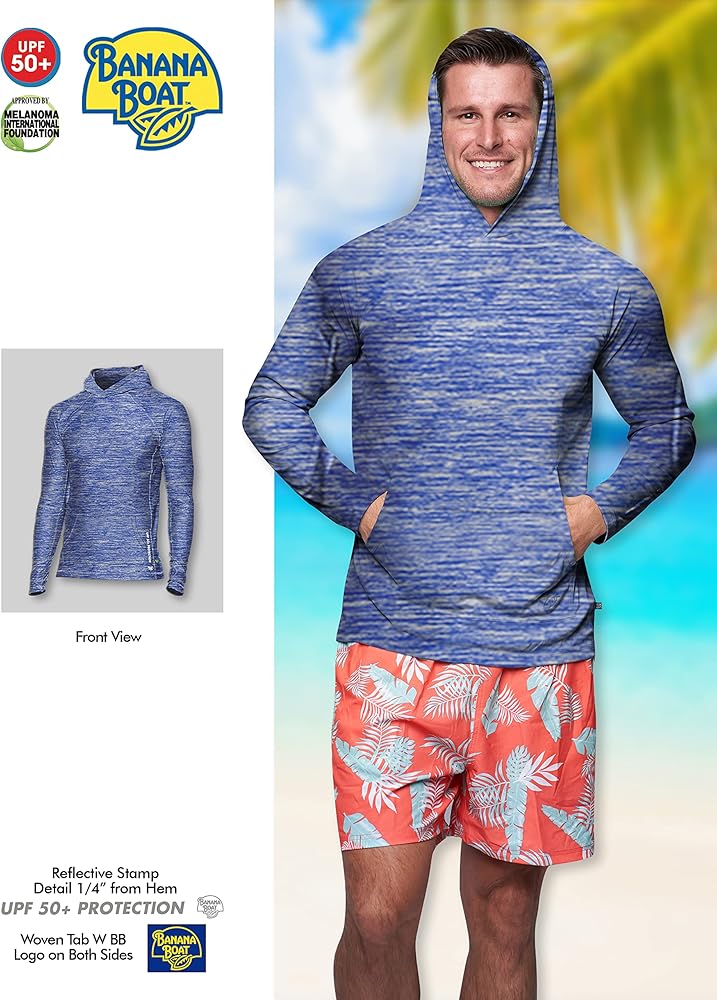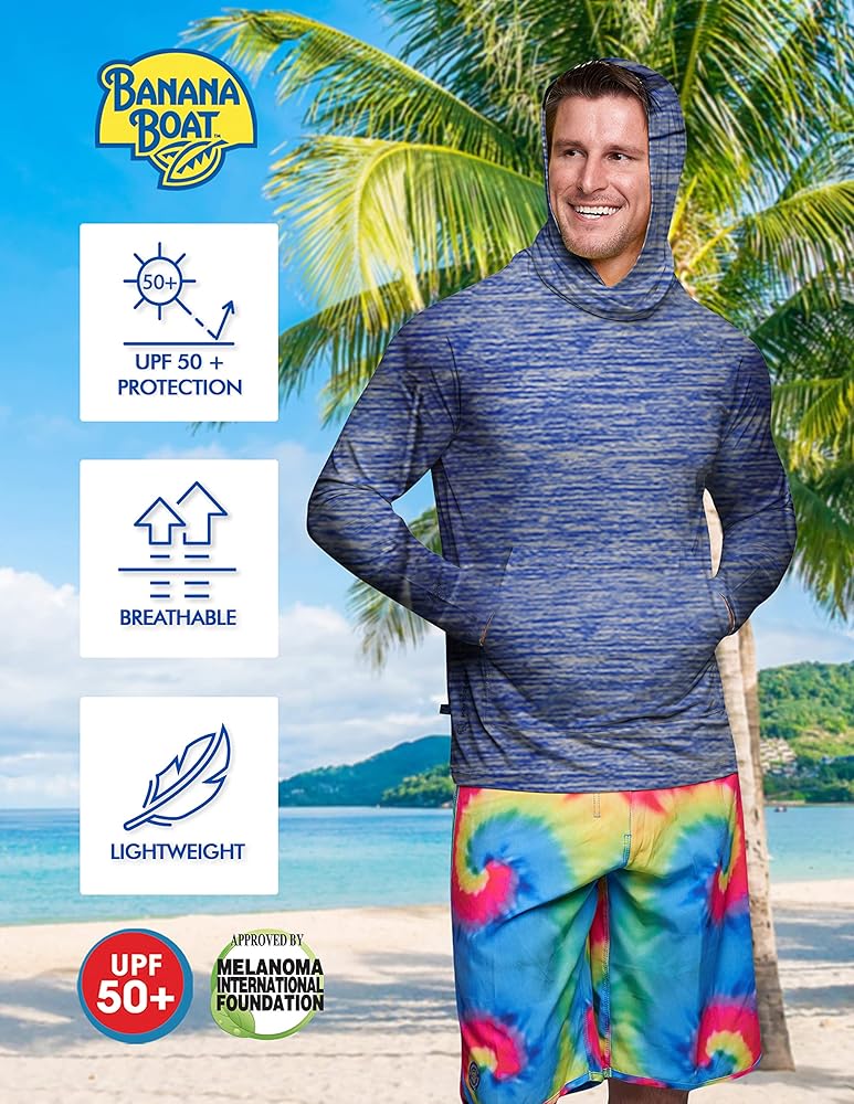 بانانا بوت قميص رجالي بأكمام طويلة بعامل حماية من الأشعة فوق البنفسجية 50+ مقاوم للماء | حماية من الأشعة فوق البنفسجية | مقاوم للرياح | جيد التهوية | تي شيرت أداء بغطاء للرأس
