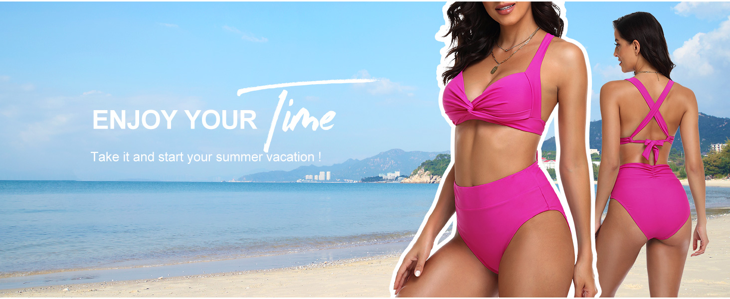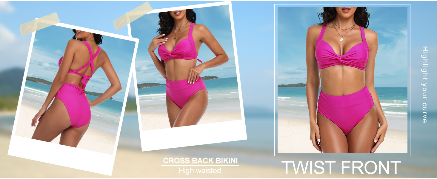 ارتفع الساحلية المرأة بيكيني المايوه تويست الجبهة ملابس السباحة Crossback مثير عالية مخصر قطعتين ثوب السباحة