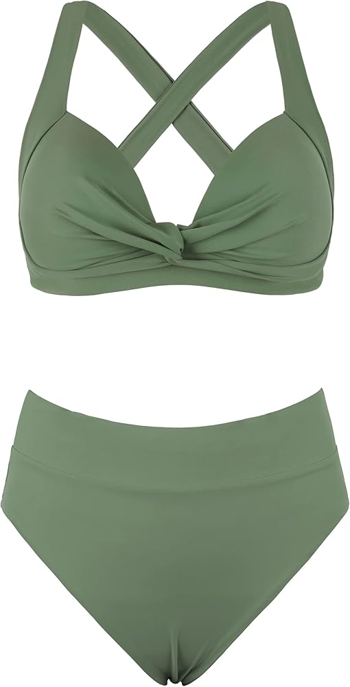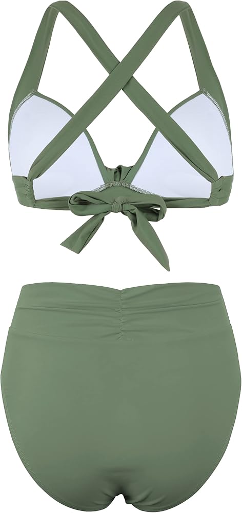 - بدلة استحمام بيكيني للنساء مكونة من قطعتين، تتضمن ربطة عنق متقاطعة من الخلف وجزء سفلي بيكيني عالي الخصر