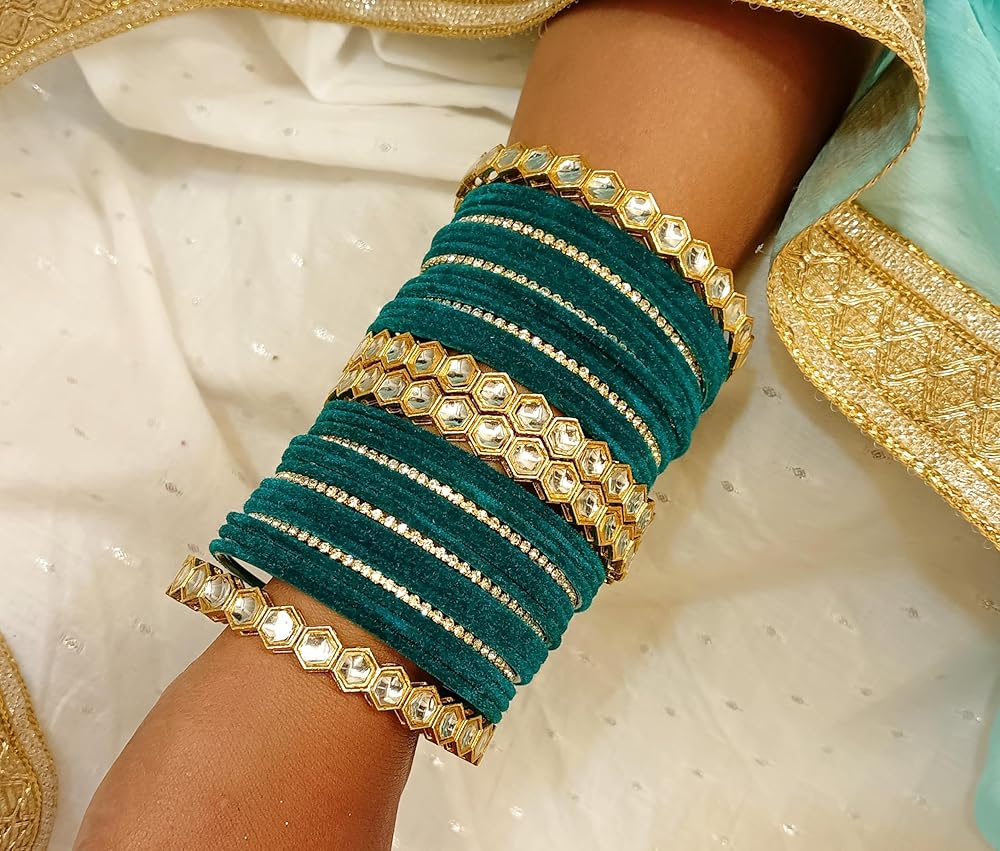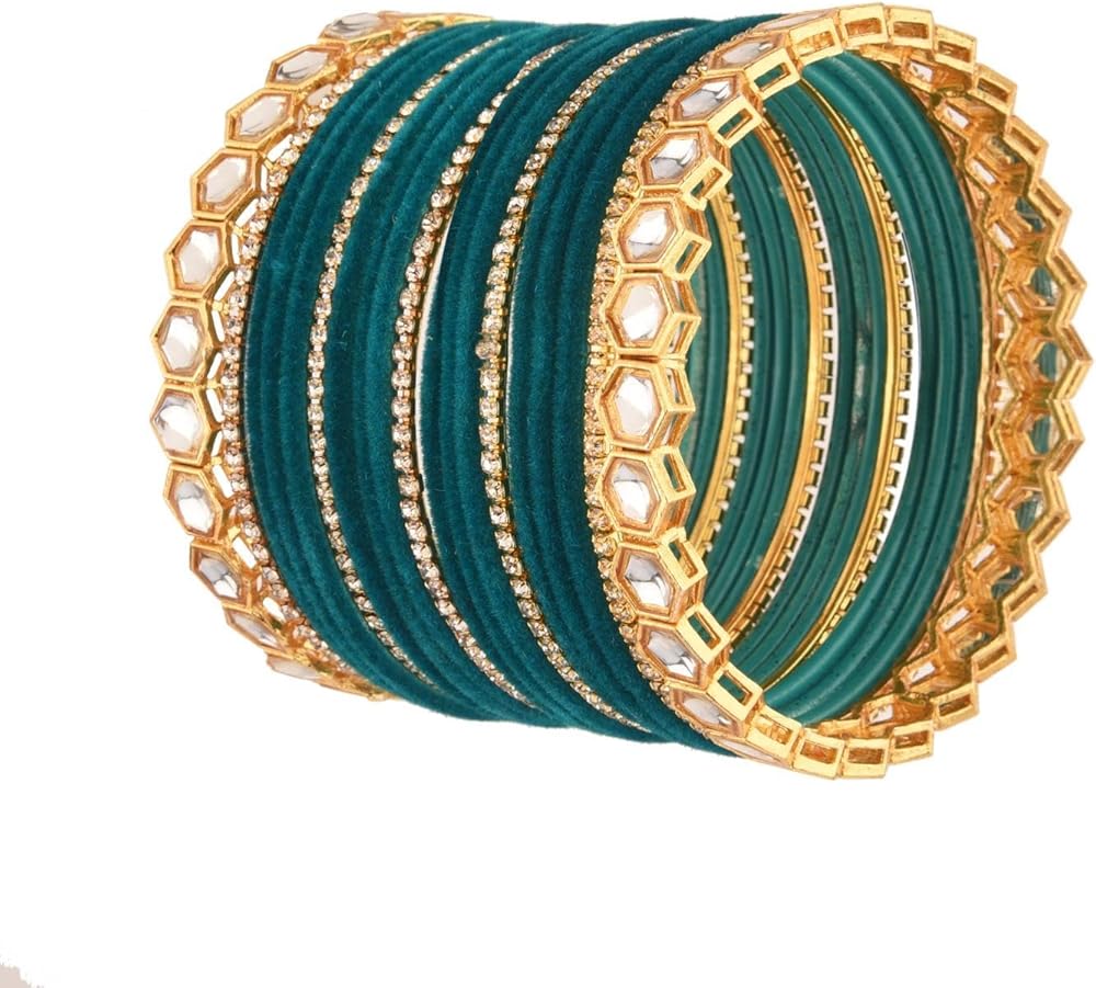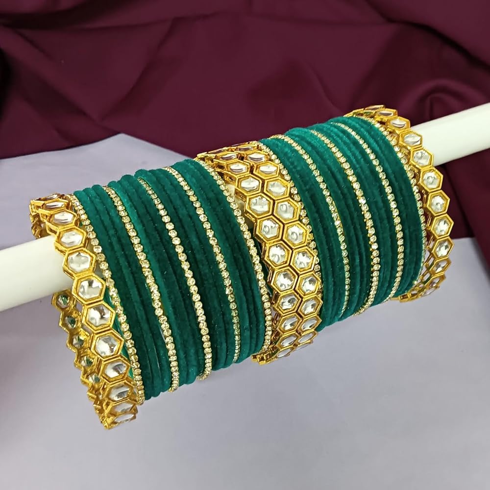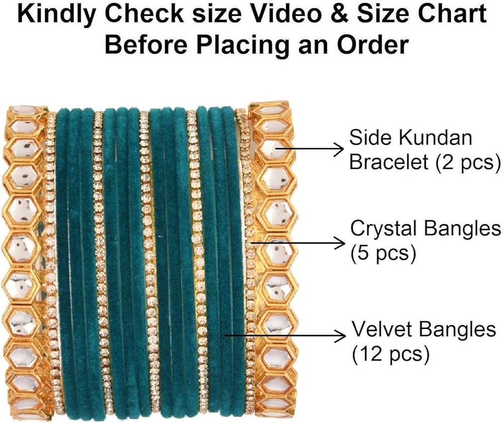 This exquisite and elegant bohemian indian jewelry, indian bangles for women adds a comtemporary touch to your ensembles. Embellished with plain velvet coating bangle bracelet, faux kundan bangle, cz crystal rhinestone, a classic fusion of exquisite craftsmanship and feminine elegance. This antique look jewelry goes with everything in your closet from ethnic outfit like saree, lehenga, gowns, suits on any wedding, party, engagement, ring ceremony, prom, anniversary or any festive or special occasion or as fashion novelty costume jewelry. These statement jewelry can be wear on occasion of Wedding, Sangeet, Engagement, Dance Performance, Dandia Nights, Garba and the Festivals like, Diwali, Eid, Rakshabandhan, Navratri, Durga Pooja, Holi or any special occasions and moment of your life. Elegant gift jewelry for yourself and your loved ones, like, Mother, Daughter, Girl Friend, Wife, Fiance, Grand Mother, Sister - Sister in law, Aunt, Neighbour. Ideal Valentine's, Birthday, Anniversary, mother's day, women's day, gift for wife or girlfriend