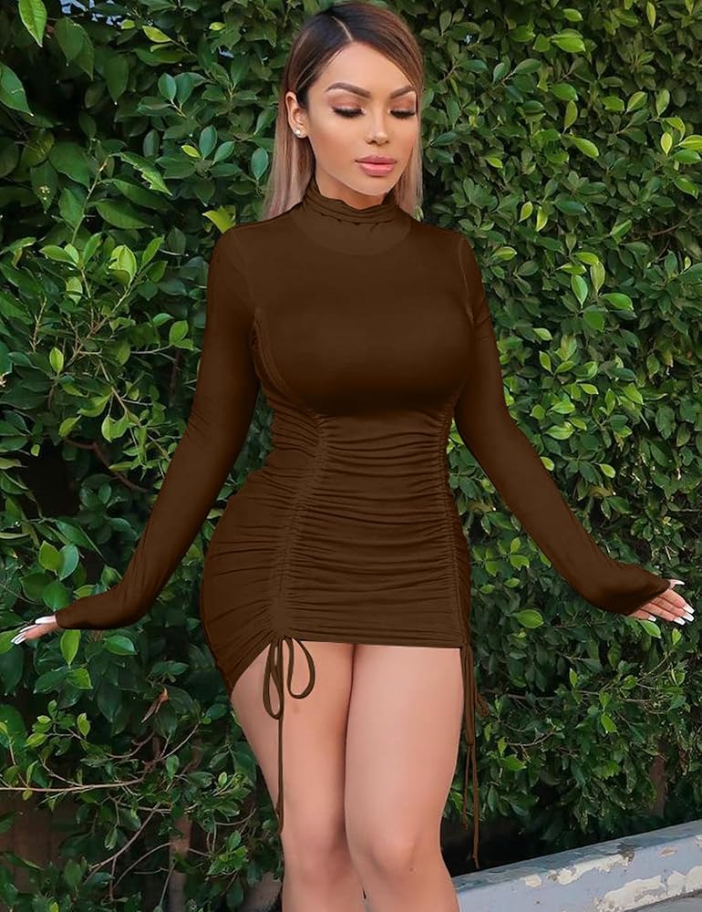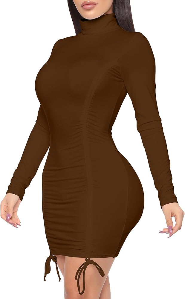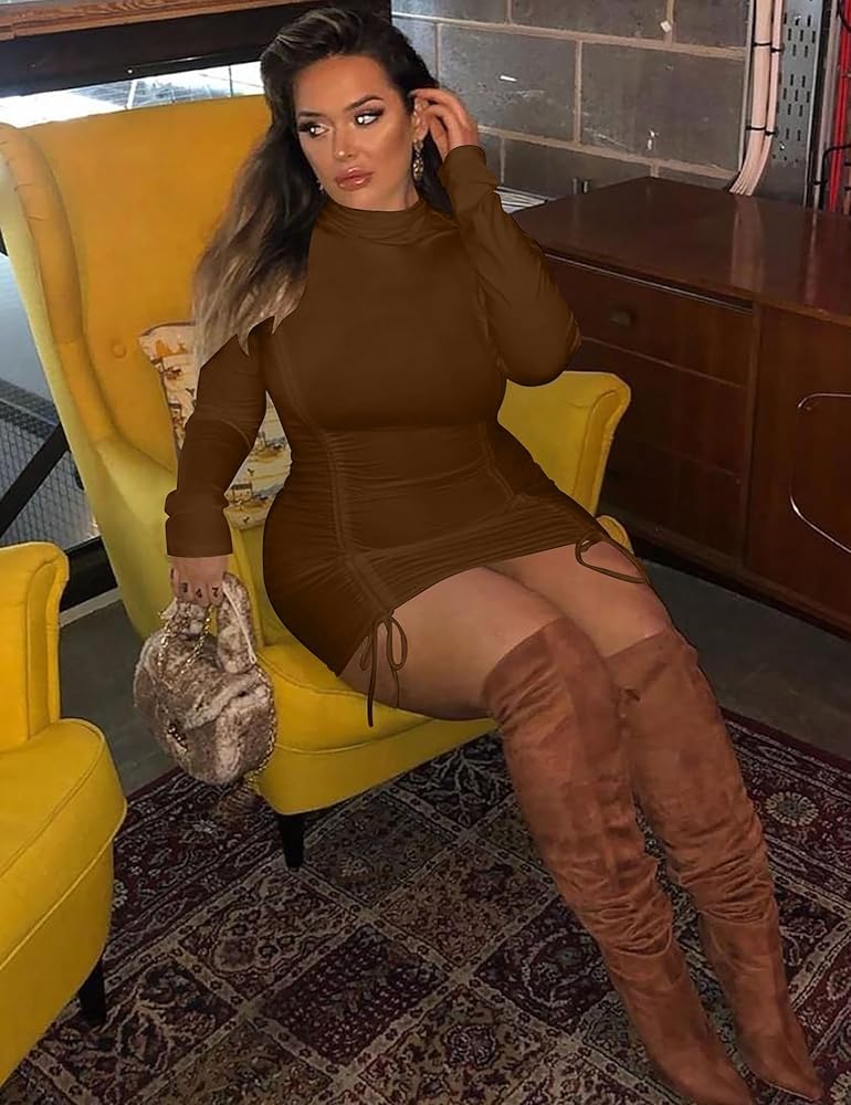 - التصميم: يتميز الفستان المثير ذو الرقبة المستديرة بتصميم برباط، مقاس نحيف، فستان قصير مكشكش، فستان برقبة دائرية وأكمام طويلة. الفساتين القصيرة الضيقة مثالية للخريف والشتاء والربيع