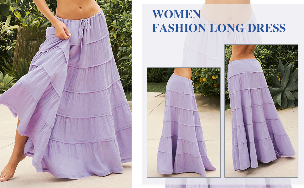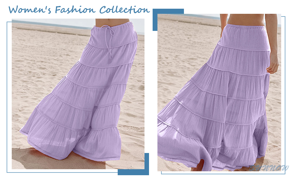 تنورة ماكسي للسيدات لدينا، إضافة متعددة الاستخدامات وأنيقة لخزانة ملابسك! توفر هذه التنانير الطويلة للنساء مقاسًا جذابًا متوسط الارتفاع مع صورة ظلية منتفخة على شكل حرف A، مما يمنحك مظهرًا مريحًا وعصريًا.
