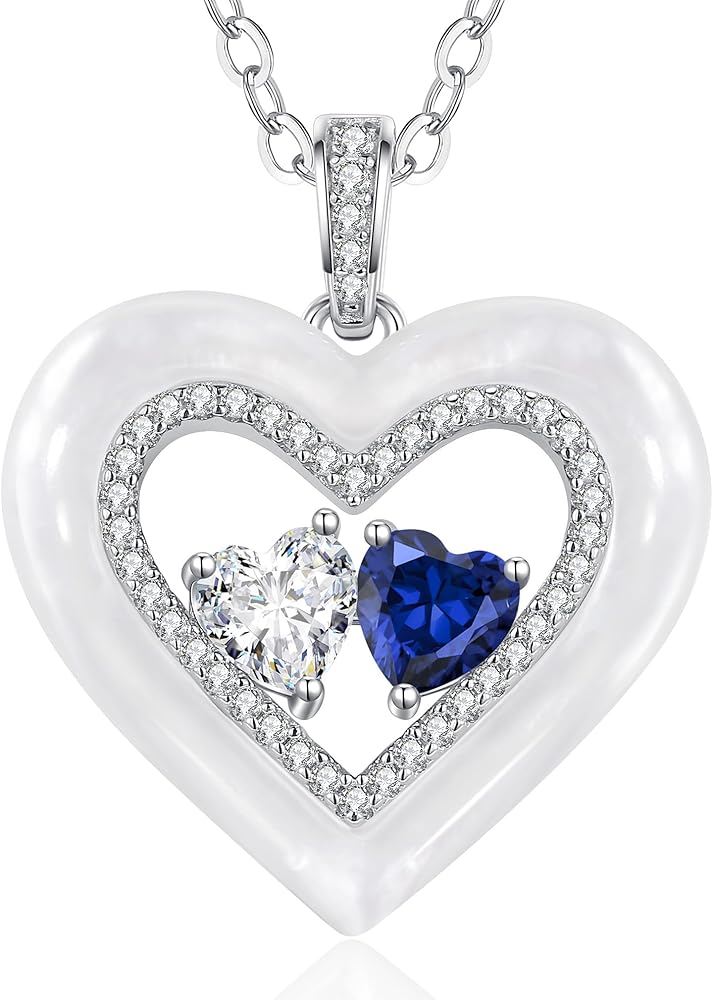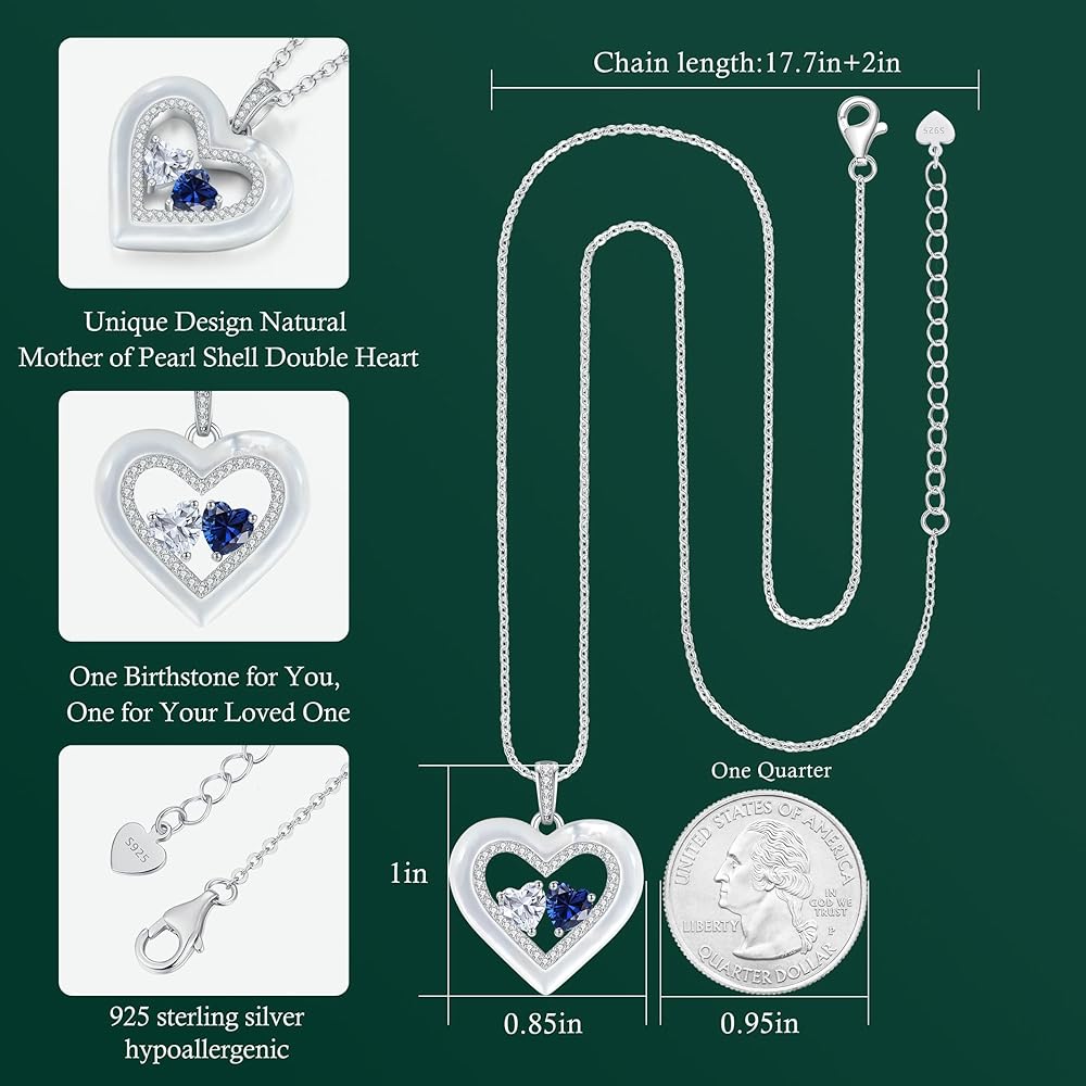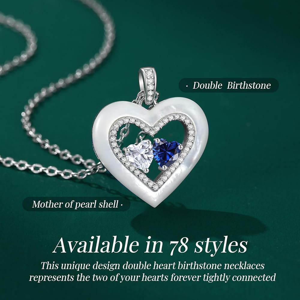 💝MY HEART WILL GO ON WITH YOU: This unique design double heart birthstone necklaces represents the two of your hearts forever tightly connected, the two birthstones intertwined within the heart shape mother of pearl shell . The double birthstone means "My Heart Will Go On With You", expressing love and commitment to your loved one.
