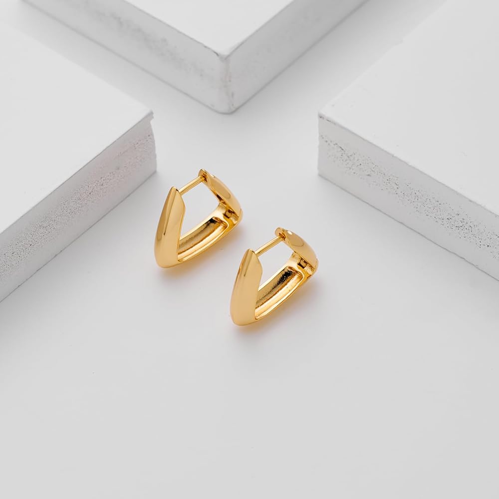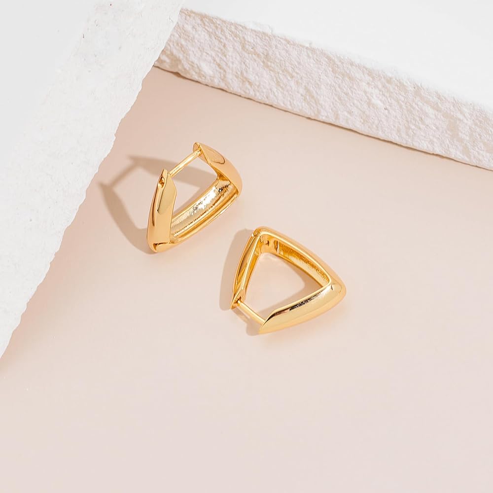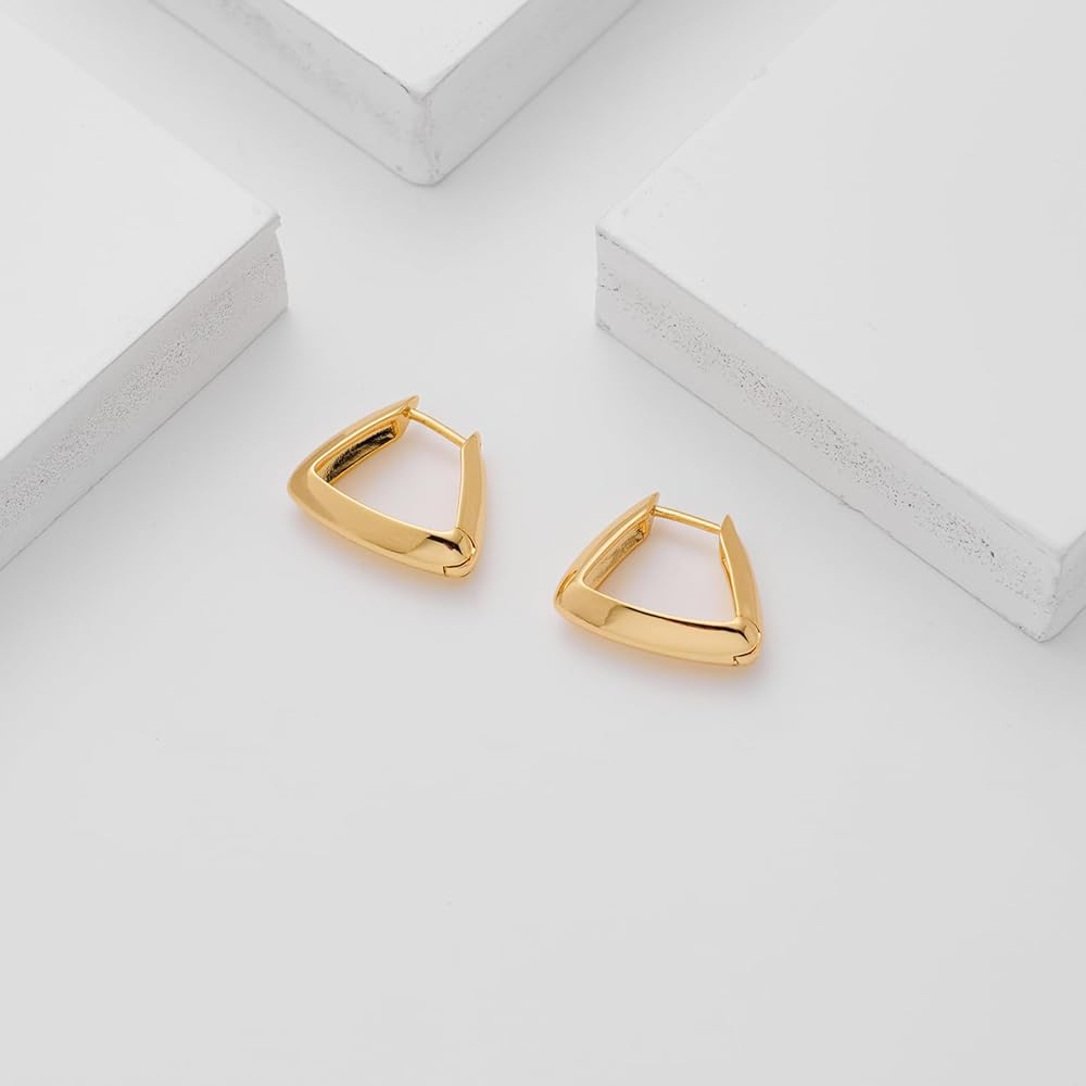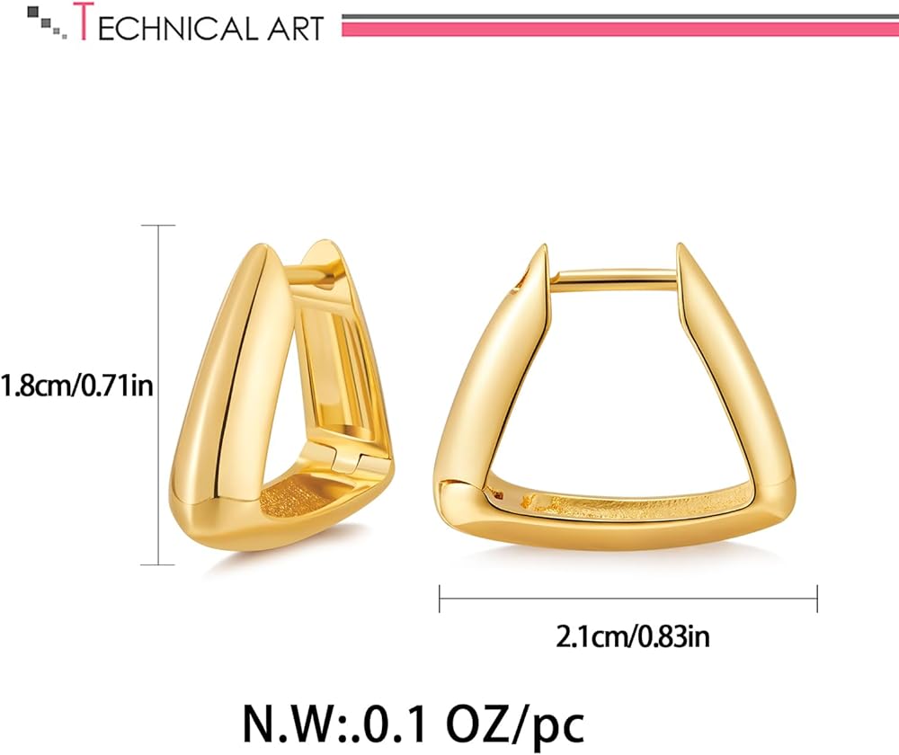 أزياء متعددة الاستخدامات: أطلق العنان لمصمم الأزياء الداخلي الخاص بك مع مجموعتنا المذهلة من الأقراط الحلقية الذهبية. يضيف التصميم المثلث الفريد لمسة عصرية إلى الطوق الكلاسيكي، مما يجعل هذه الأقراط ضرورية لكل امرأة عصرية. عززي أناقتك مع هذه الأقراط الذهبية الأنيقة.
