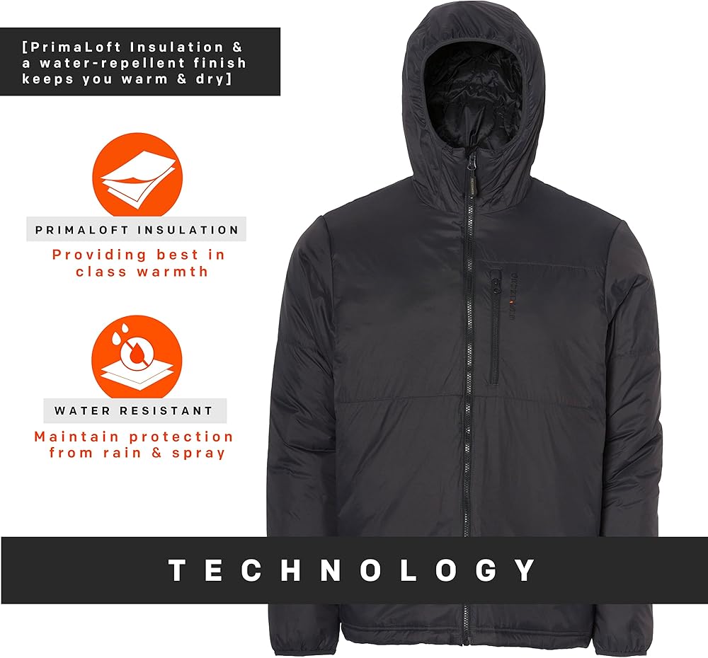 • Primaloft RISE 133gm2 insulation at body and hood. Primaloft RISE 80gm2 insulation at sleeves and side panels