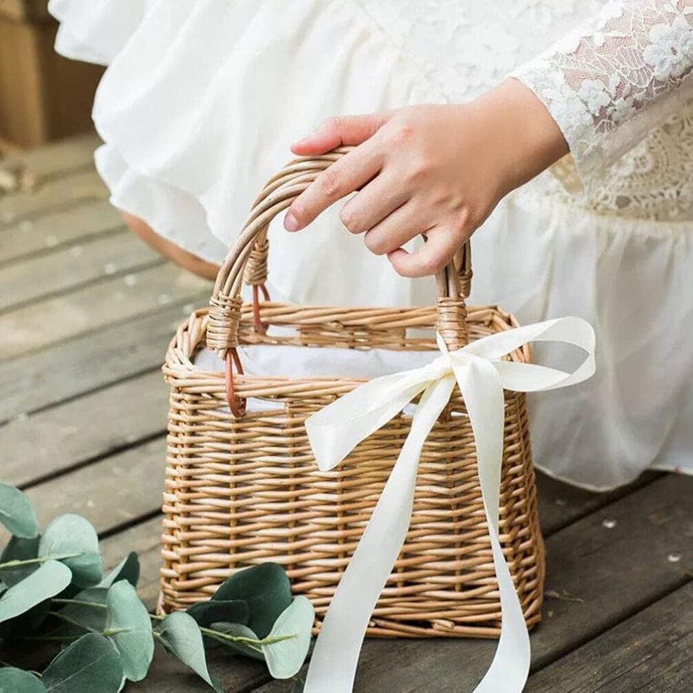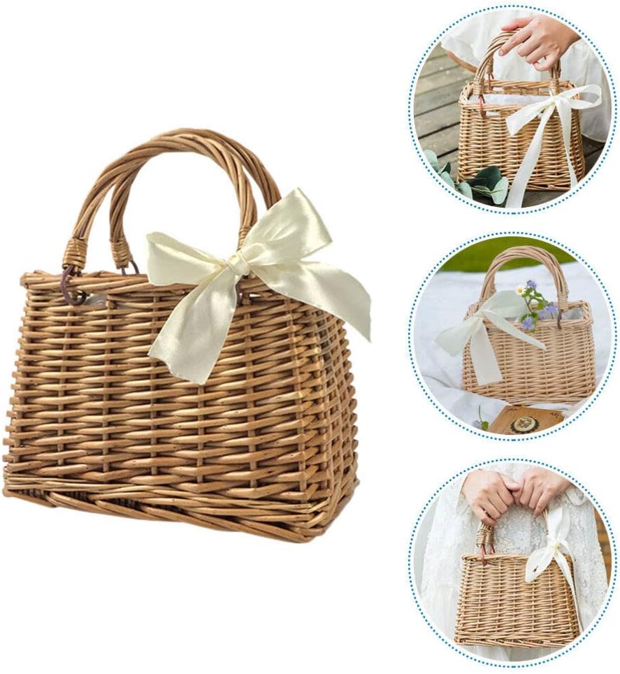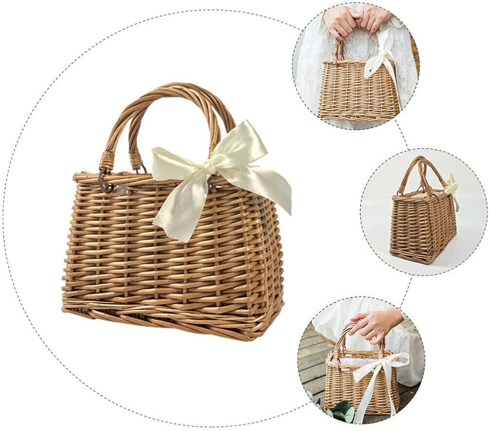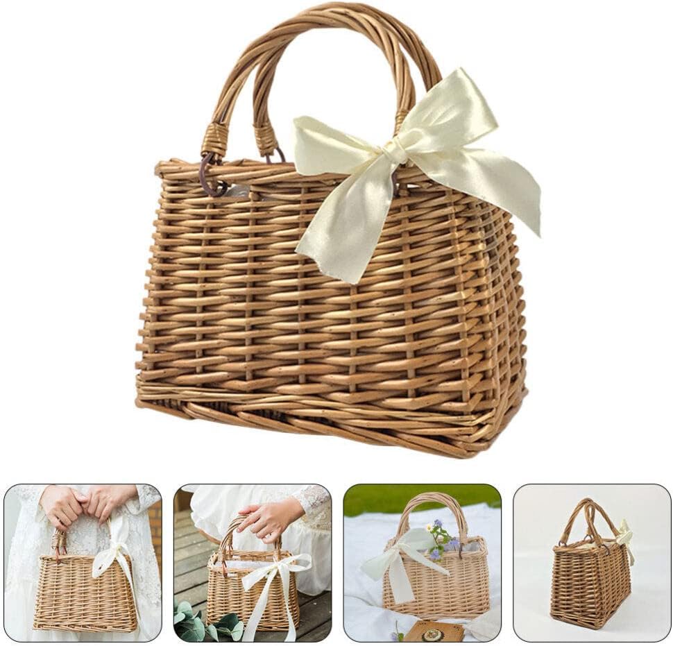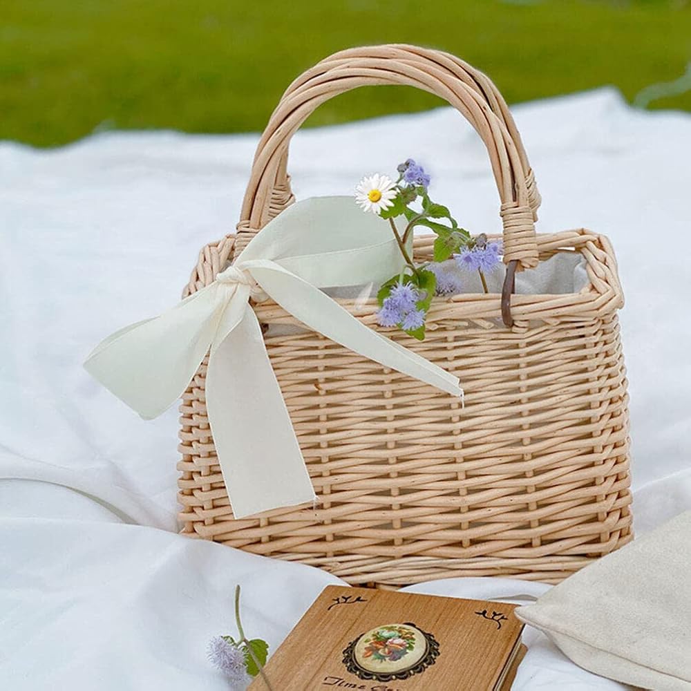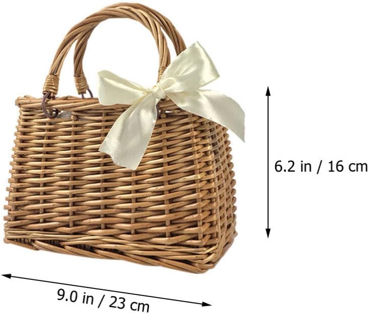 حقيبة منسوجة من القش من الراتان على شكل فيونكة، حقائب يد بمقبض علوي وسلال خوص وحقائب يد وحقيبة يد بنمط بوهو حقيبة شاطئ سلة زهور من القش للنساء