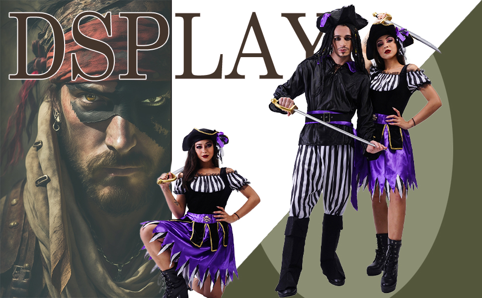 دي اس بلاي زي القراصنة التنكري للنساء، فستان قرصان ارجواني لحفلات الهالوين