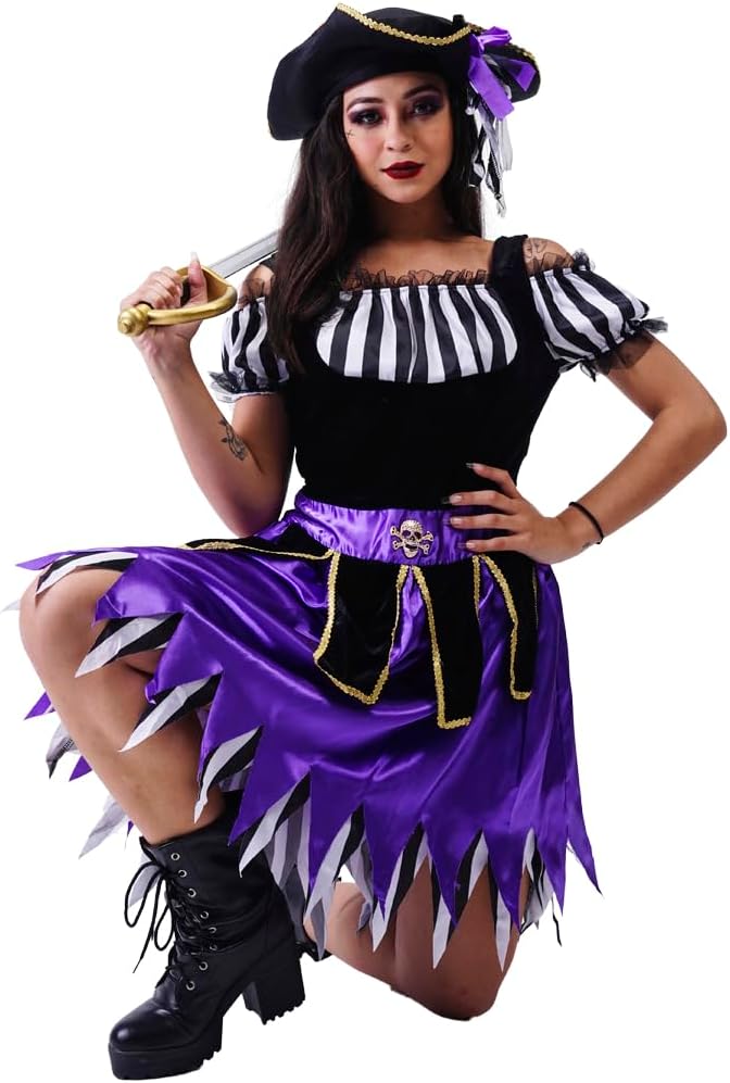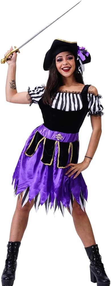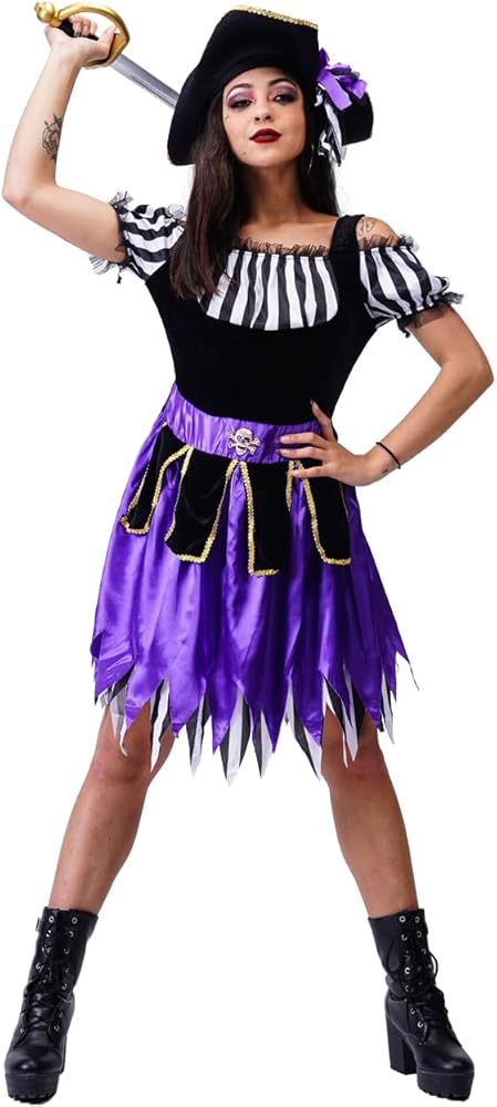 - زي القراصنة التنكري للنساء للعب دور القراصنة للبالغين زي تنكري للنساء فستان قرصان أرجواني