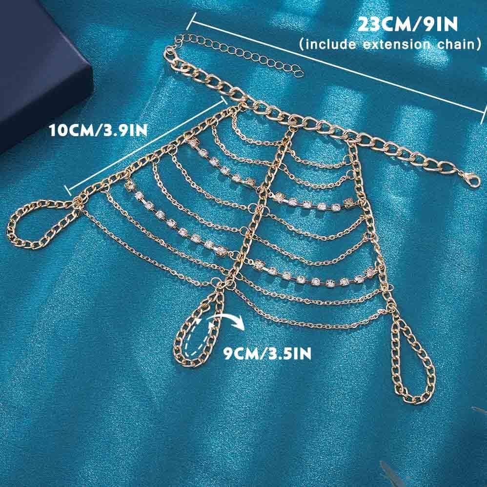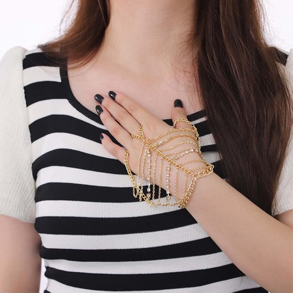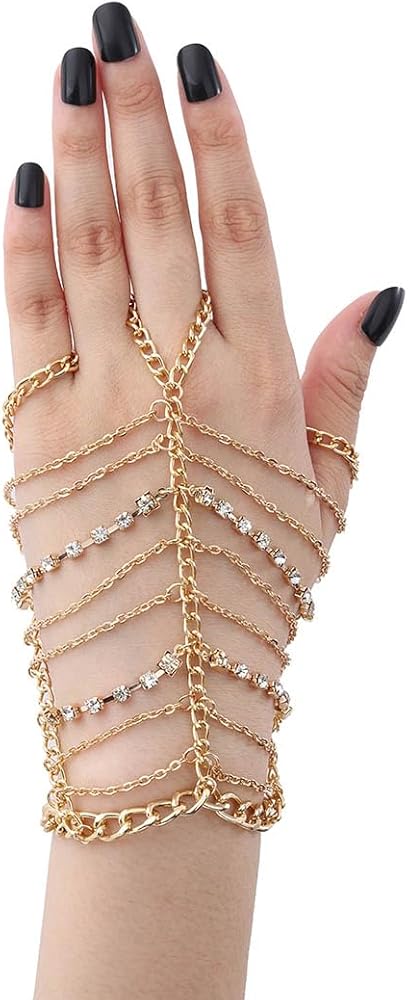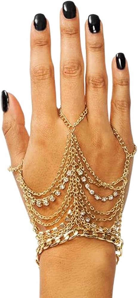 Obmyec بوهو كريستال أساور الذهب الطبقات البنصر سلسلة اليد شرابة الزفاف الخصر أساور حزب اليد مجوهرات للنساء والفتيات
