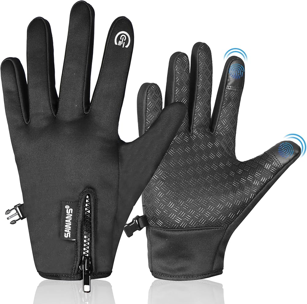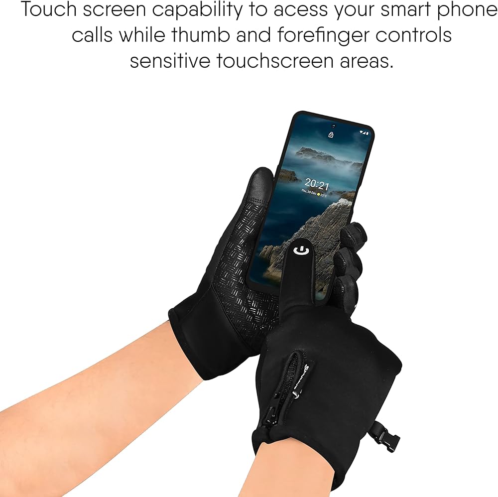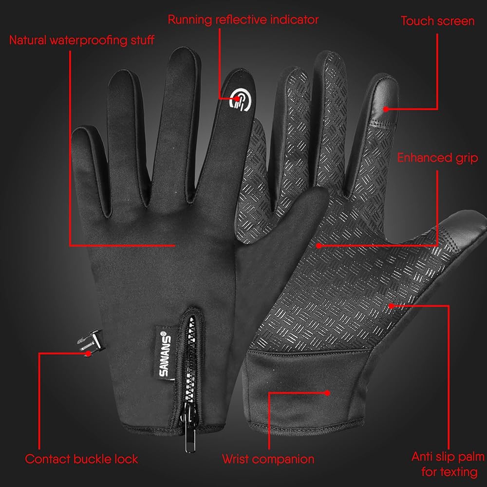 Thermal winter gloves have a zipper fastener on the back for size adjustment to fit your hands comfortably and easier to put on or put off. Touch screen waterproof mountain bike full finger fashion anti slip gel gloves anti-slip silicone grain layer full of antiskid silica gel prevent slick effect at slippery moment and grasping movement without slippage and absorb slight shock from bumpy off road vibrations. Unisex cycling gloves maintain maximum warmth while also providing water absorption feels soft and comfortable suitable for running, sports, walking, and cycling.