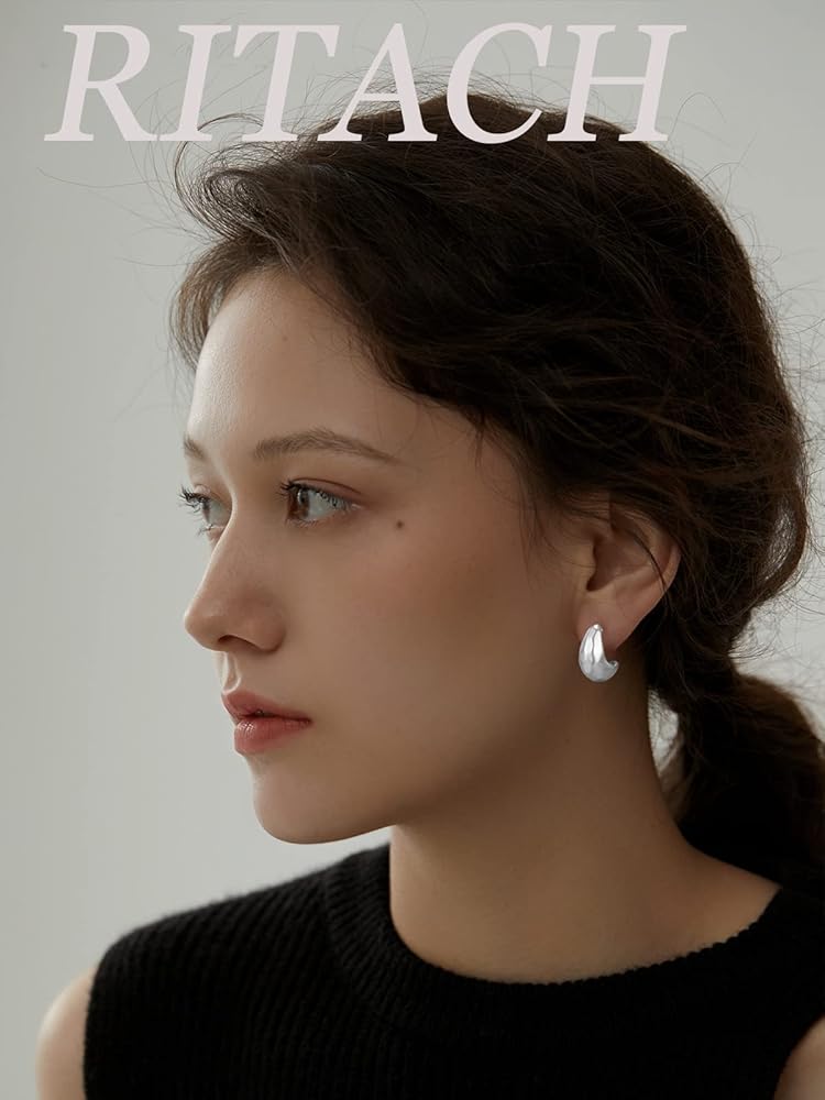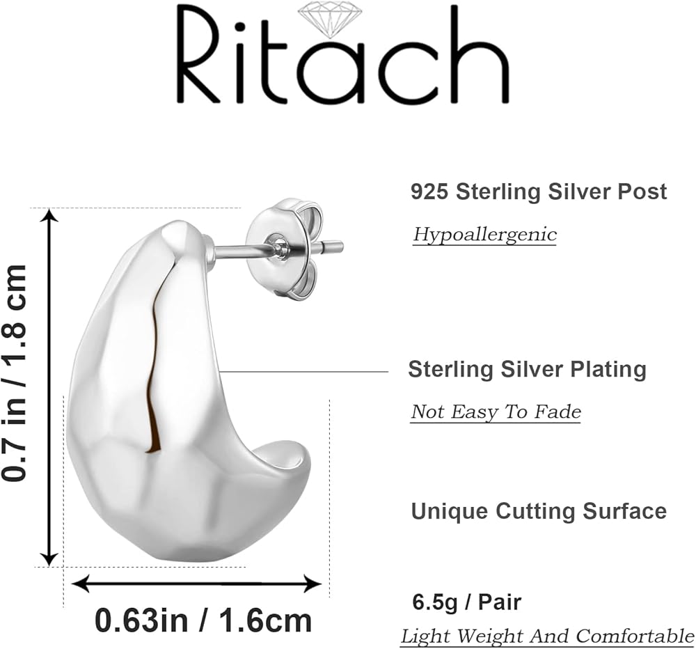 【هدية مرضية】: أقراط دائرية ذهبية مكتنزة من ريتاتش للنساء، تصميم كلاسيكي مناسب للنساء من جميع الأعمار. الأقراط الطوقية المصنوعة من الفضة الإسترلينية مناسبة جدًا كهدية لعيد الميلاد / الأم / الزوجة / الفتيات المراهقات / الأصدقاء في عيد الأم / عيد الحب / عيد الميلاد / الذكرى السنوية.