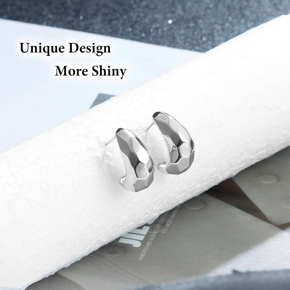 【تصميم كلاسيكي】: الأطواق الذهبية المكتنزة للسيدات بتصميم ملتوي، فريد وشعبي. مكتنزة وخفيفة الوزن. السطح المطلي بالذهب المصقول العالي يجعل الأطواق الفضية الصغيرة المكتنزة لامعة.