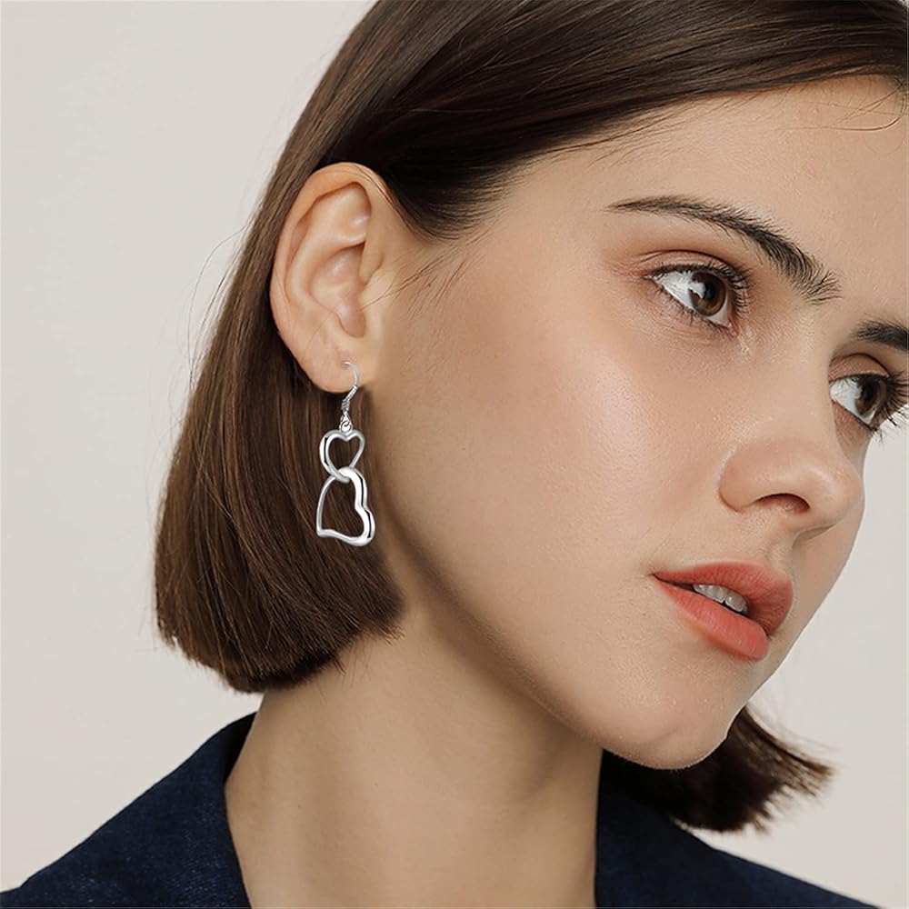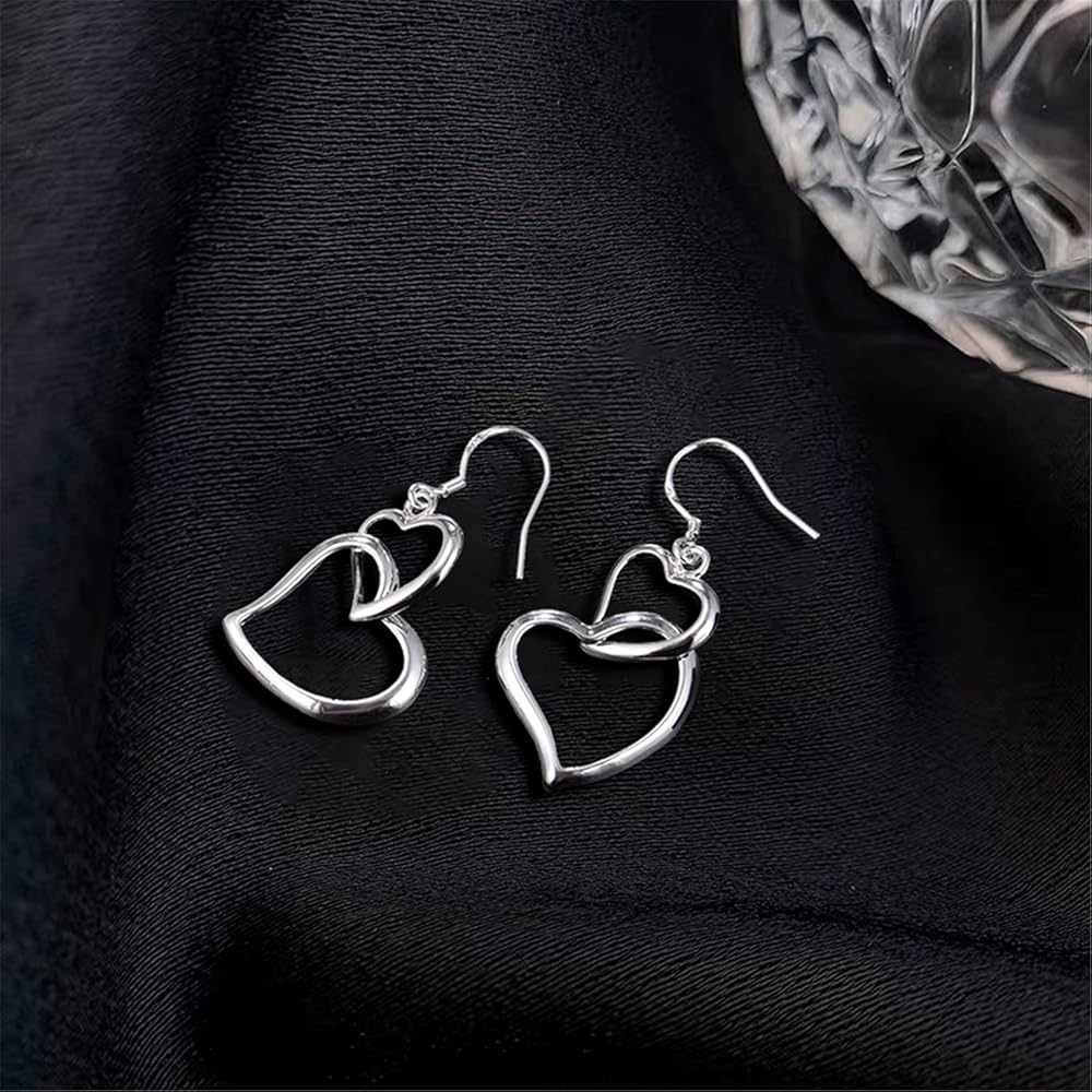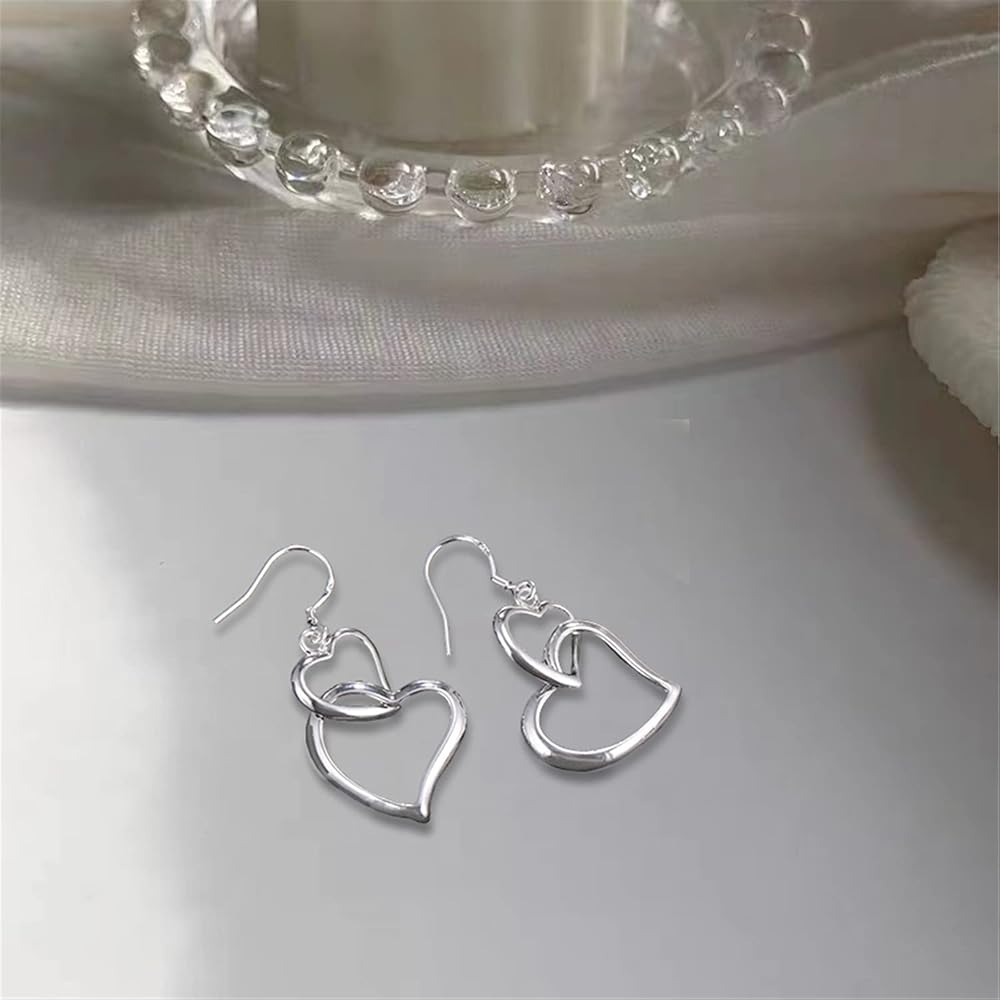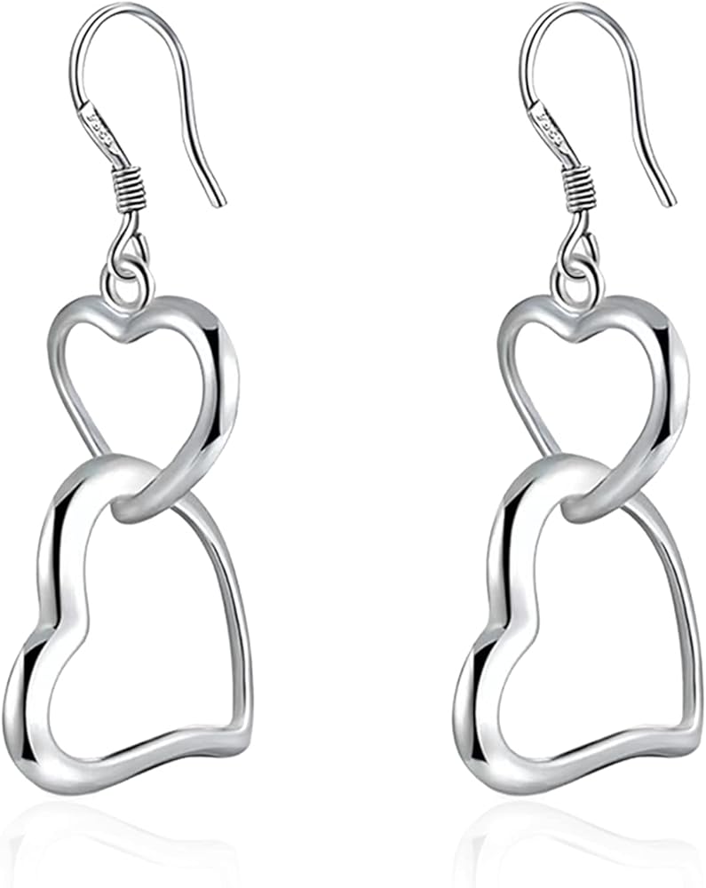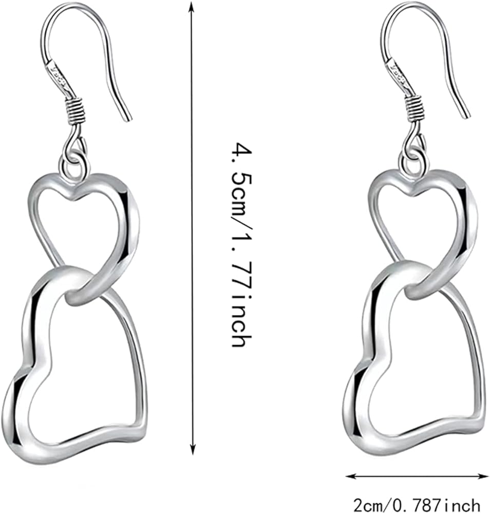 Sterling silver fish hook earrings featuring double heart design, lightweight and comfortable, they are very easy to insert into your ears, this heart hook earrings fits for any occasions.