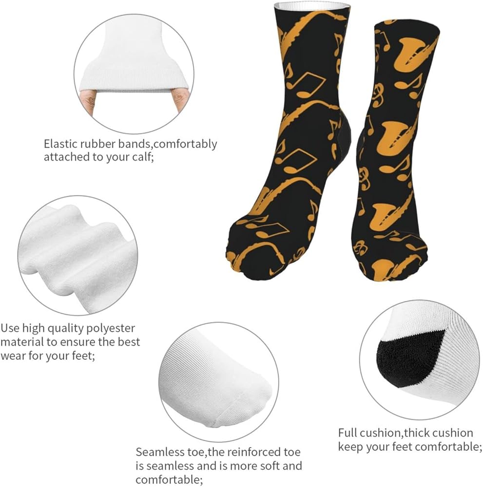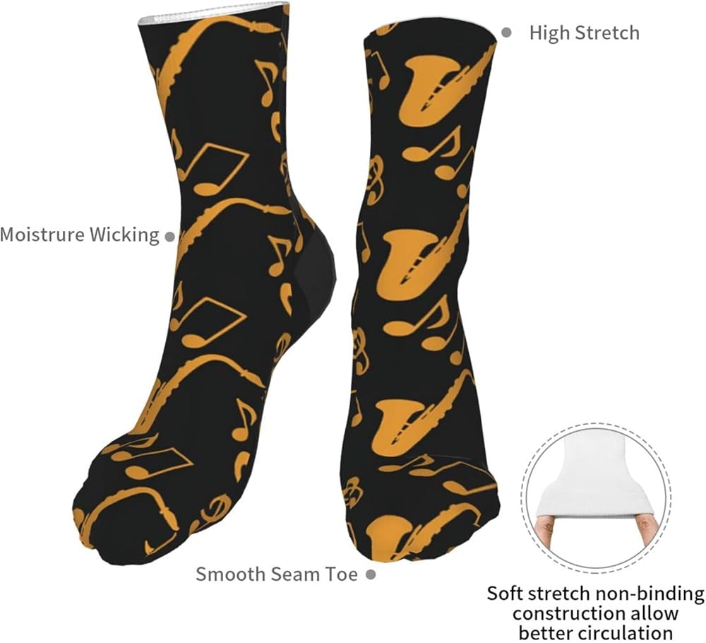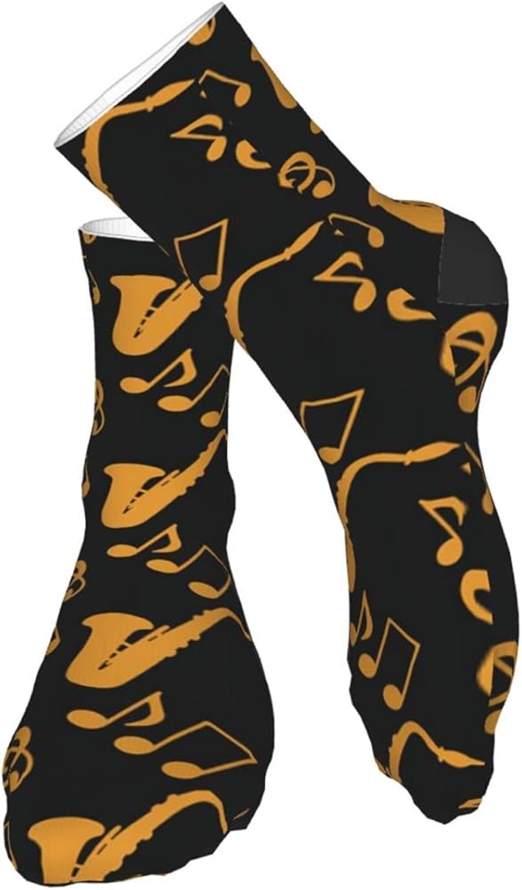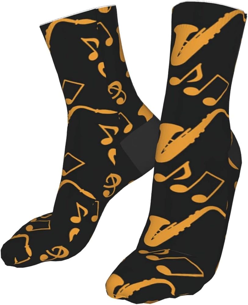 اوتوز جوارب رياضية بطول الكاحل للرجال والنساء من القطن بنمط نوتات موسيقية ثلاثية كليف ساكسفون، جوارب للجري للرجال والنساء، لون اسود، مقاس واحد, أسود, مقاس واحد