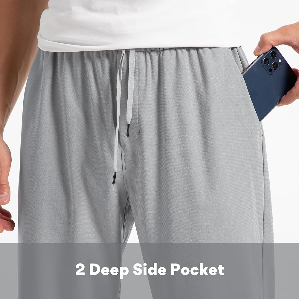 بنطال صالة رجالي بجيوب: جيبان أماميان كبيران بما يكفي لتخزين متعلقاتك. جيب خلفي بسحاب لتخزين هاتفك المحمول ومحفظتك.