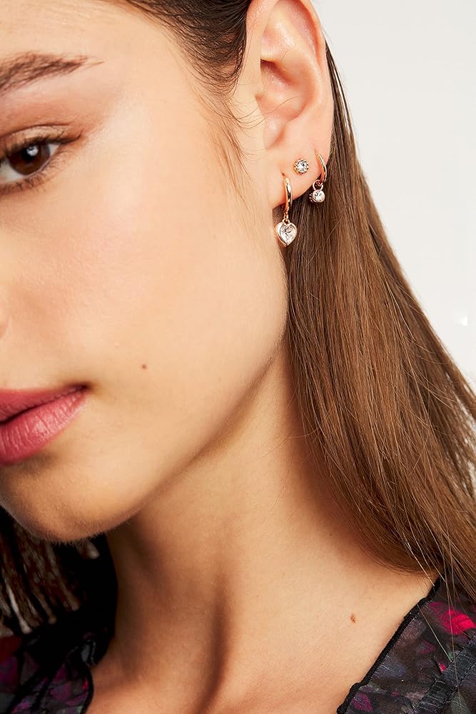 - أقراط دائرية صغيرة: هذه الأقراط اللطيفة تم تشطيبها بطلاء ذهبي اللون وتتميز بمجموعة كريستال متلألئة واحدة في المنتصف