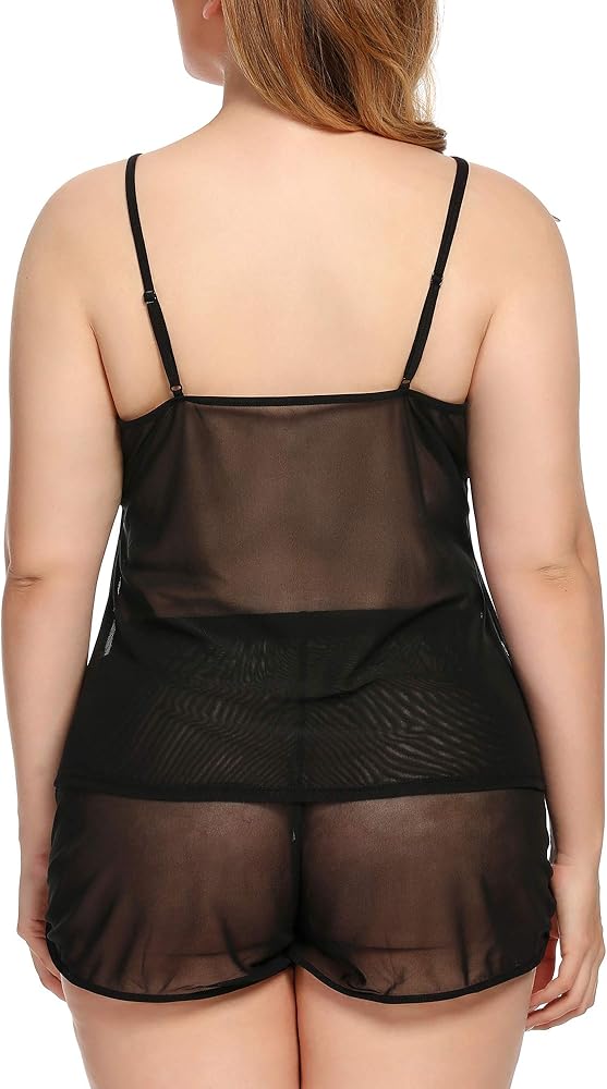 ❤ يجتمع الراحة مع الحسية في مجموعة الصالة الحصرية ذات الحجم الكبير هذه التي تتميز بجزء علوي من القماش الشبكي الشفاف مع خط رقبة على شكل حرف V، وأشرطة سباغيتي قابلة للتعديل، وزخارف وردية حمراء، وزخرفة سوداء