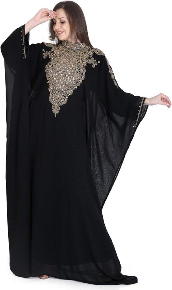 HANDCRAFTED WITH LOVE: Our kaftans are carefully handcrafted with high quality and sturdy beaded embroidery. As a special bonus, we include a set of complementary packet of extra beads & embellishments which can easily be fixed on your own; ensuring your kaftan always looks its best.