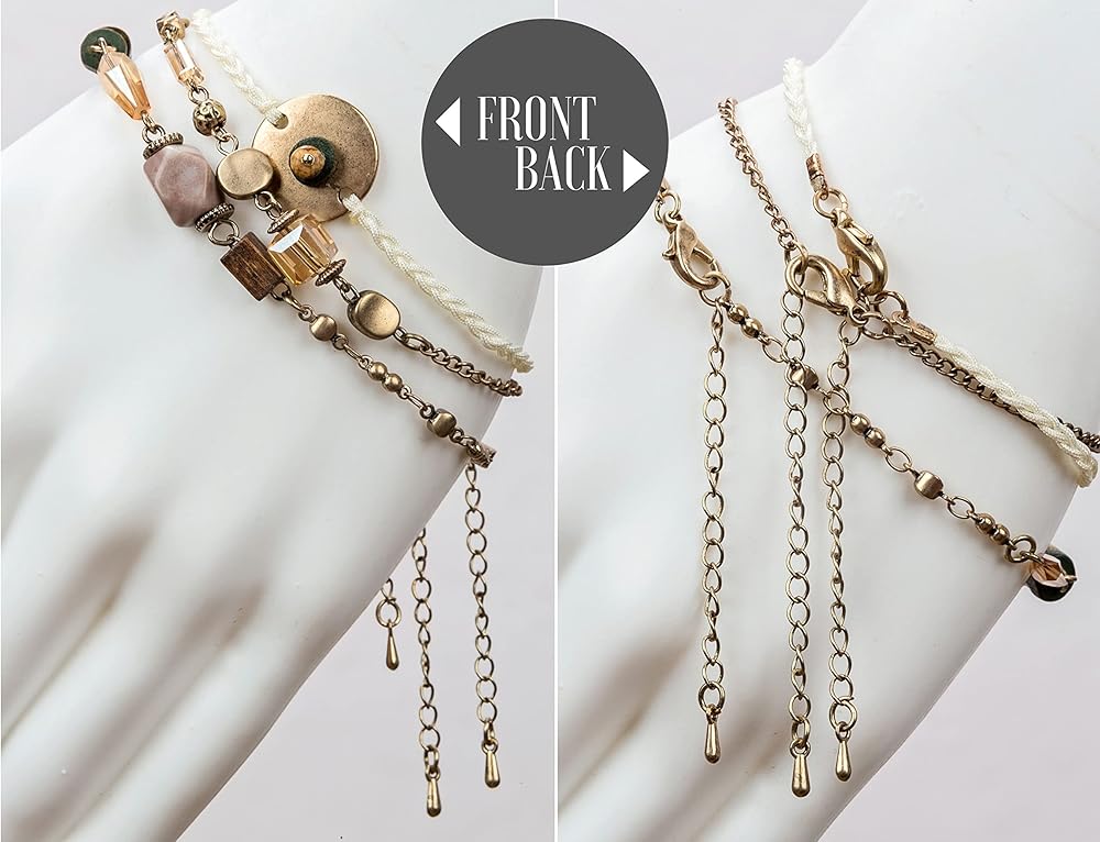 صناعة يدوية: يبلغ طول كل سوار حوالي 7 بوصات مع سلسلة تعديل بمقدار 2 بوصة. تتضمن حقيبة اورجانزا لتقديمها كهدية. تبدو رائعة مكدسة أو بمفردها.