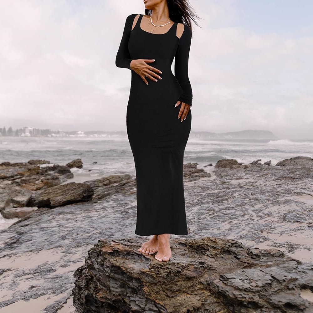جماليات عصرية: هذا الفستان طويل الأكمام مصنوع بدقة، يبرز الوركين ويصل إلى الكاحلين، ويسلط الضوء على منحنياتك مع البقاء على الموضة. يأسر مع الاسلوب والثقة.