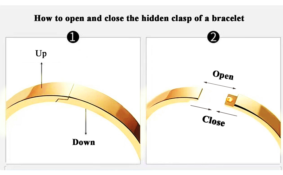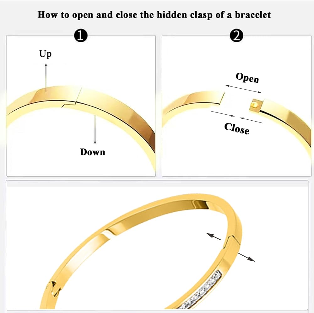 سهلة الاستخدام: السوار الذهبي ذو المشبك المخفي بسيط وأنيق، مما يجعل من السهل جدًا على البالغين أو المراهقين ارتداؤه أو خلعه. للحصول على فهم أفضل، يرجى مراجعة الفيديو الخاص بنا بعناية.