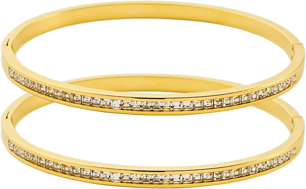أساور ذهبية للنساء: أساور Vessantara الذهبية القابلة للتكديس مصنوعة من الفولاذ المقاوم للصدأ عالي الجودة مع لمسة نهائية مطلية بالذهب عيار 14 قيراط. إنها قوية ومتينة ولها ملاءمة مثالية. هذه الأساور للفتيات غير مسببة للحساسية ولن تسبب تهيج الجلد. لقد تم تصميمها بحيث لا تبهت أو تفقد لمعانها أبدًا، مما يضمن بقاء لون معصمك كما هو.