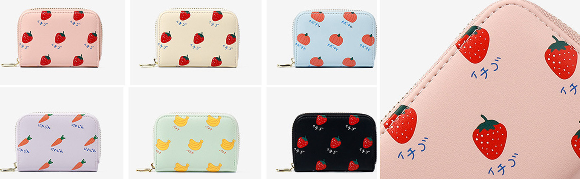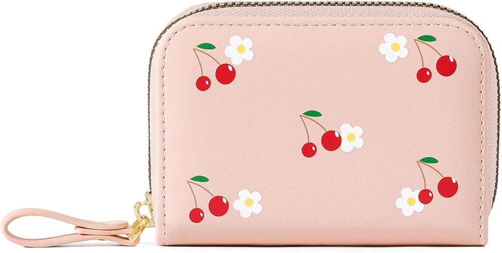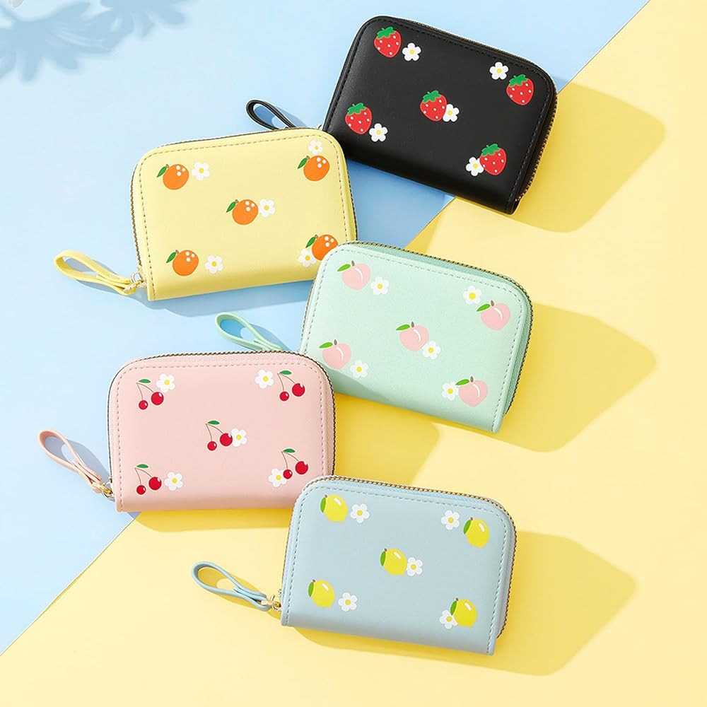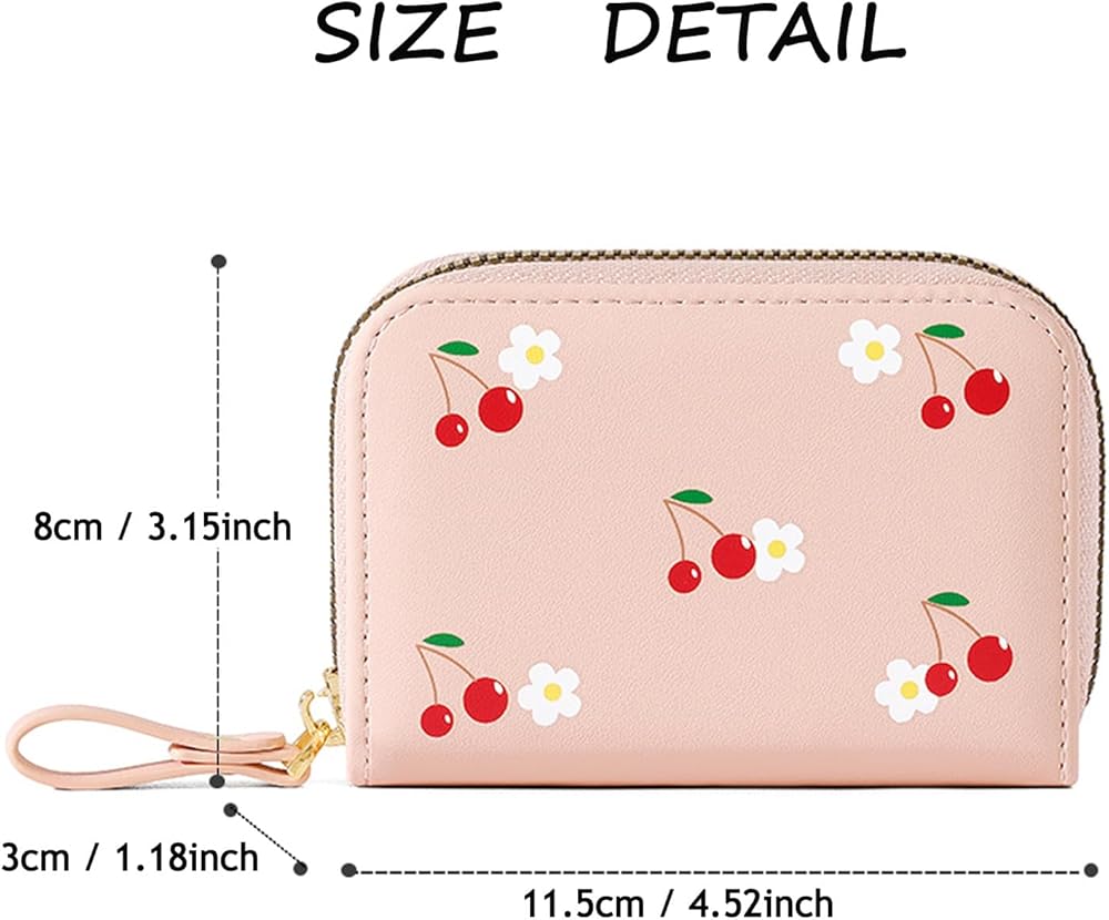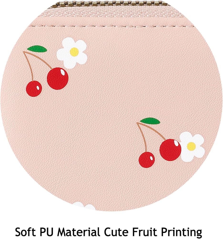 NVKIC حاملي بطاقات الائتمان لطيف للنساء نمط الفاكهة البريدي حول فو الجلود محفظة ضئيلة للفتيات النقدية محفظة نسائية للعملات المعدنية اللون الوردي