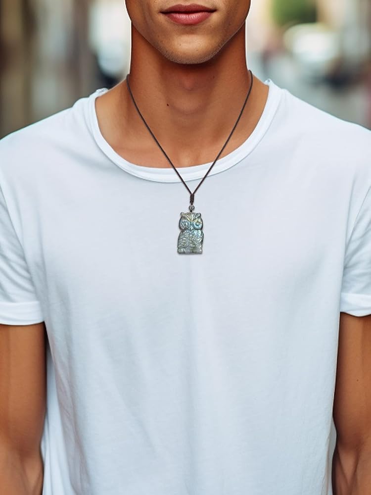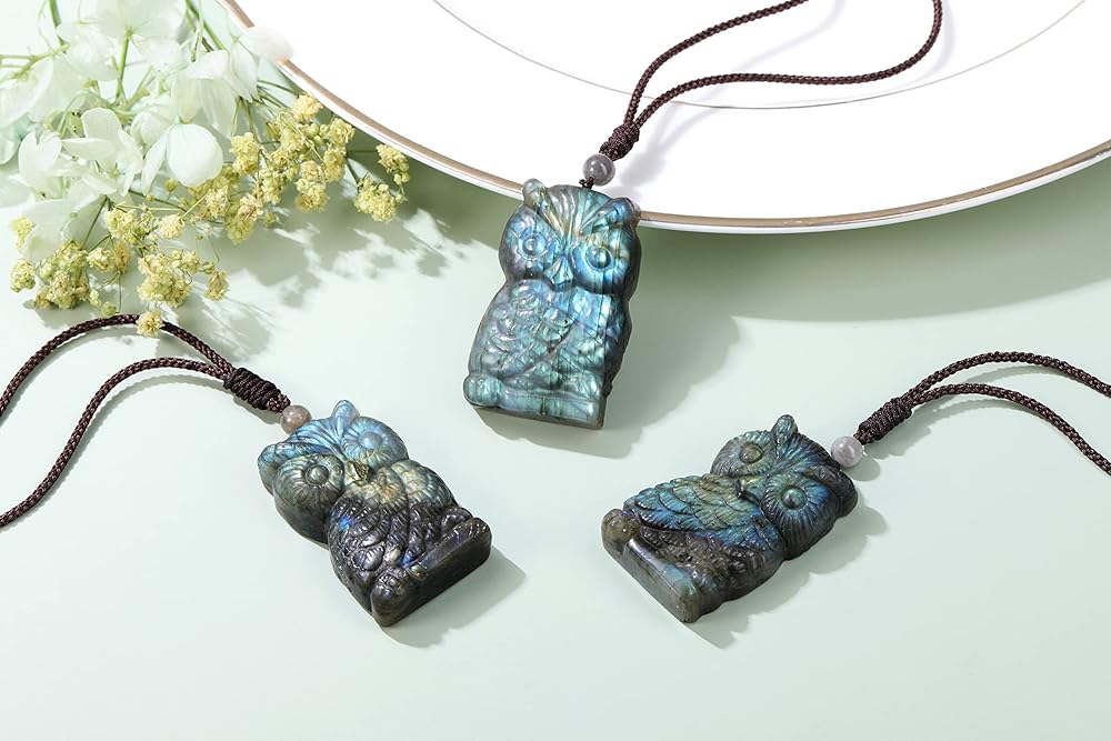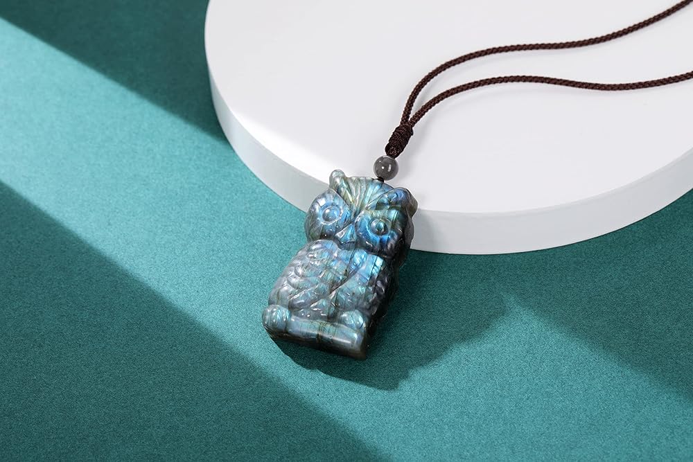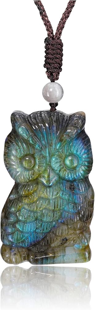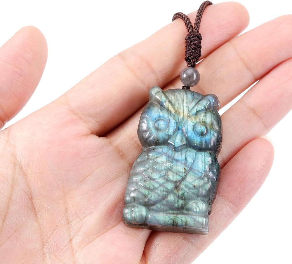 جيكرست قلادة بومة كريستال لابرادوريت منحوتة من حجر كريستال الشفاء الطبيعي للرجال والنساء، قلادة كريستال للحماية من الاحجار الكريمة، مجوهرات هدية للكريسماس