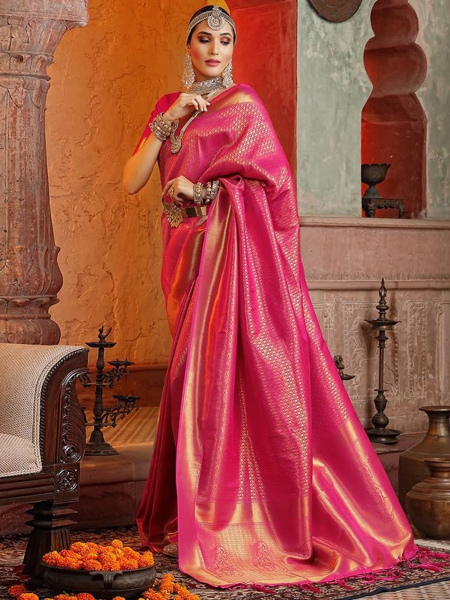 Explore The Collection Of Beautifully Designed Sarees From On Amazon. Each Piece Is Elegantly Crafted And Will Surely Add To Your Wardrobe. Pair This Piece With Heels Or Flats For A Graceful Look