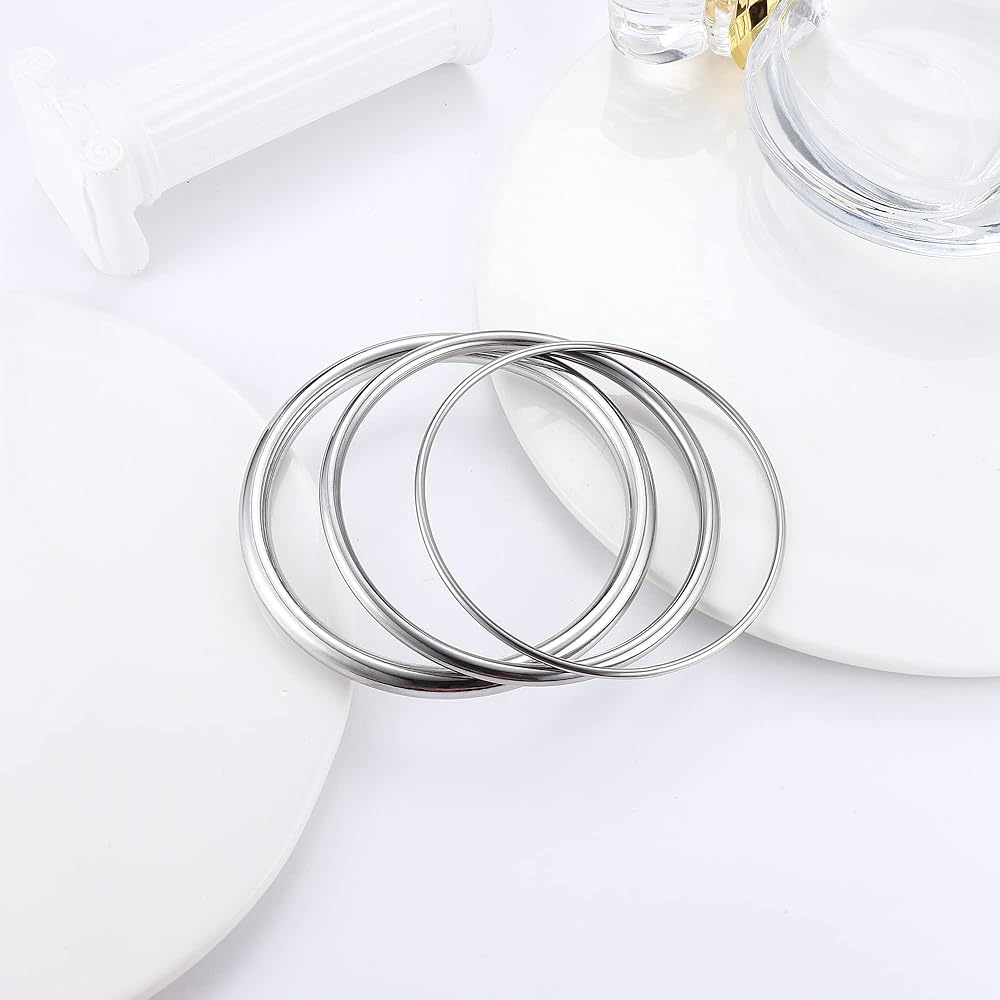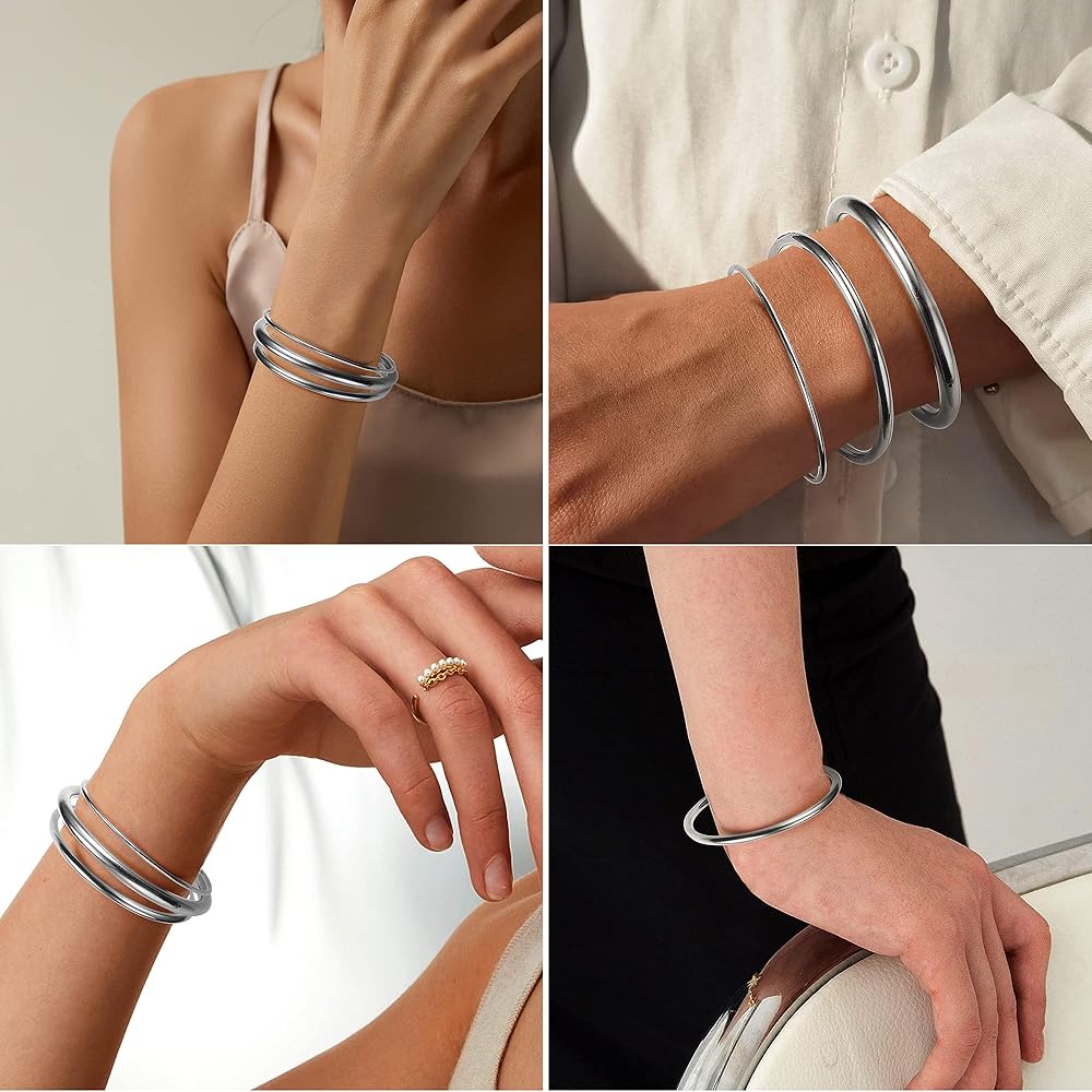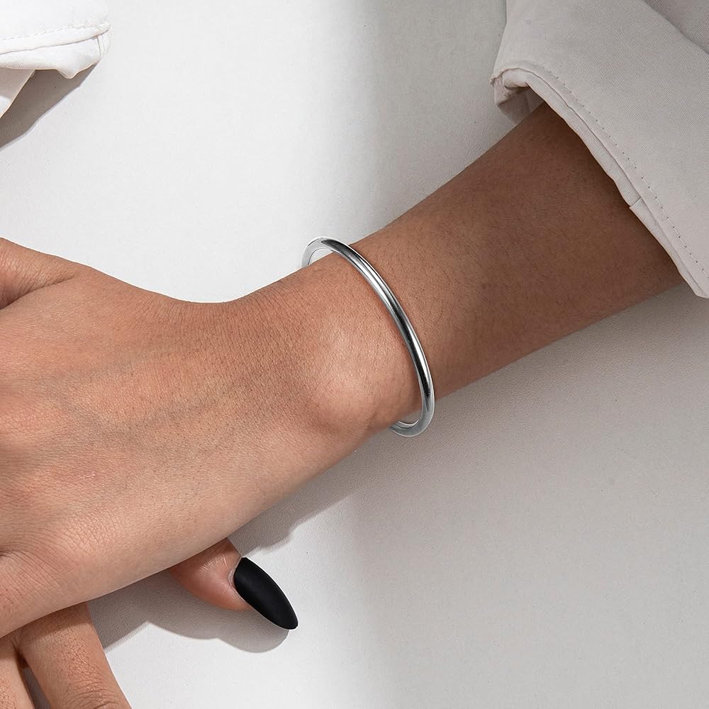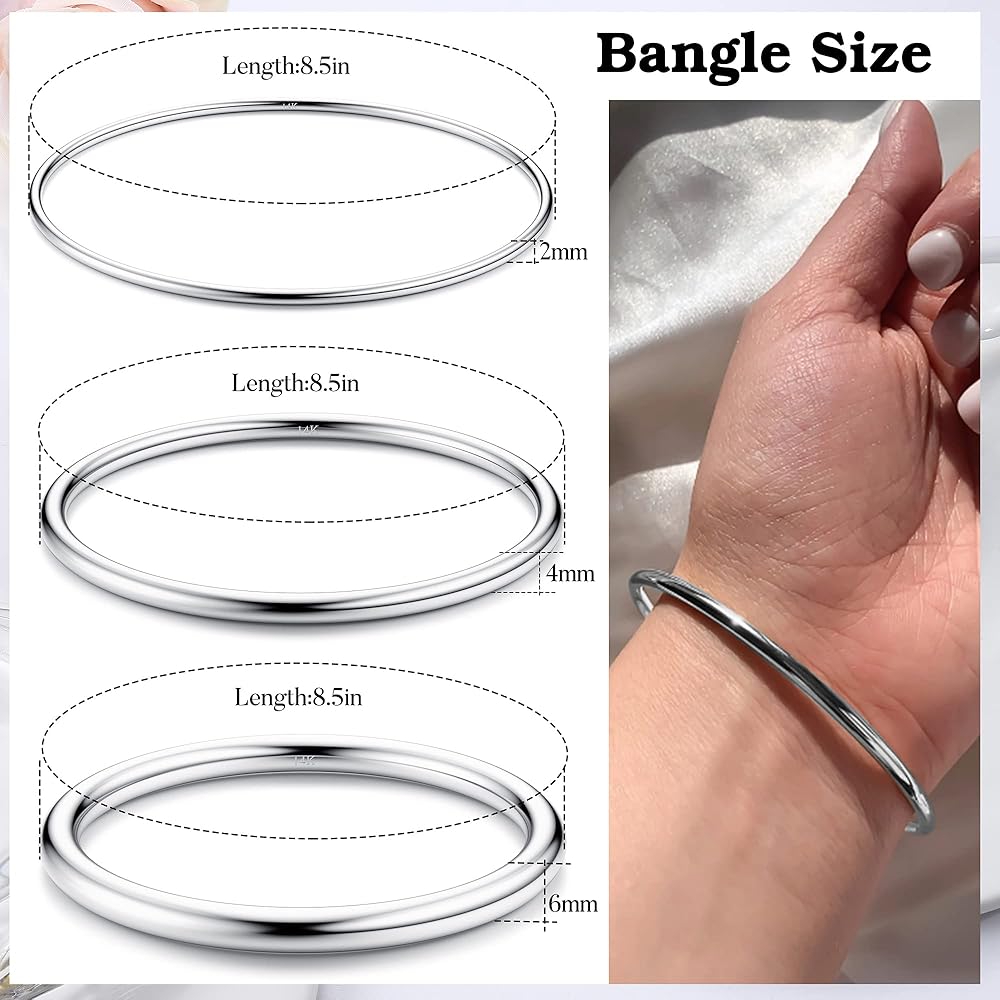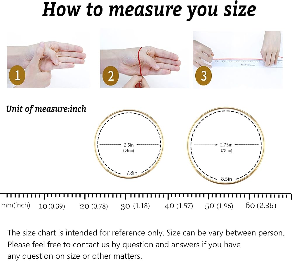 【حجم الأساور】الأساور الثلاثة بسُمك 2/4/6 مم. القطر الداخلي: 2.5 بوصة (64 ملم) و2.75 بوصة (70 ملم) متاح للاختيار. يناسب معصم مقاس 7.5-8.5 بوصة تقريبًا. يرجى التأكد من مقاس المعصم قبل الشراء. (ملاحظة: لضمان الملاءمة المناسبة: اصنع قبضة اليد وقم بقياس الجزء الأكثر سمكًا.)