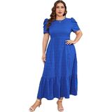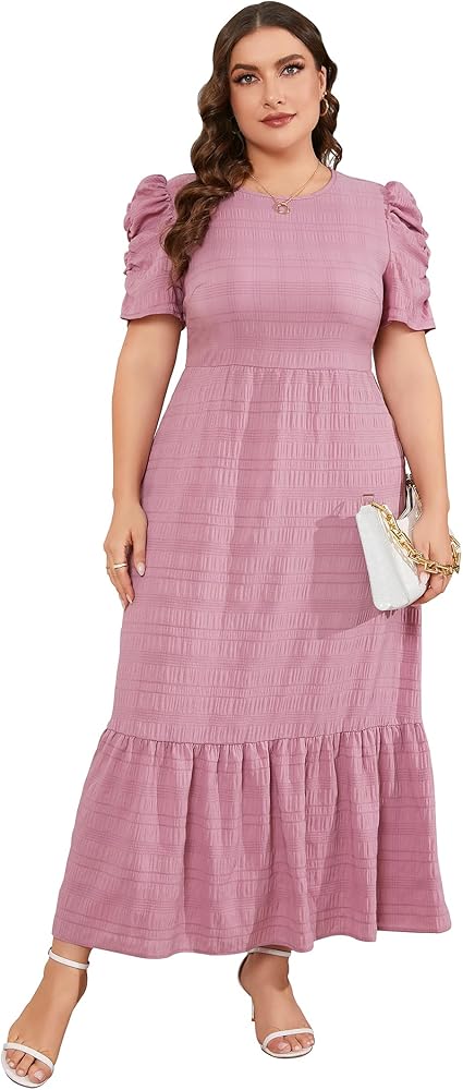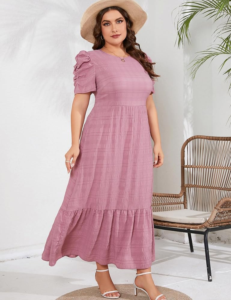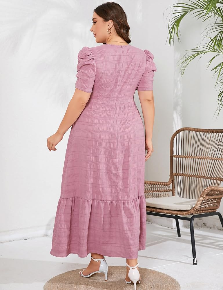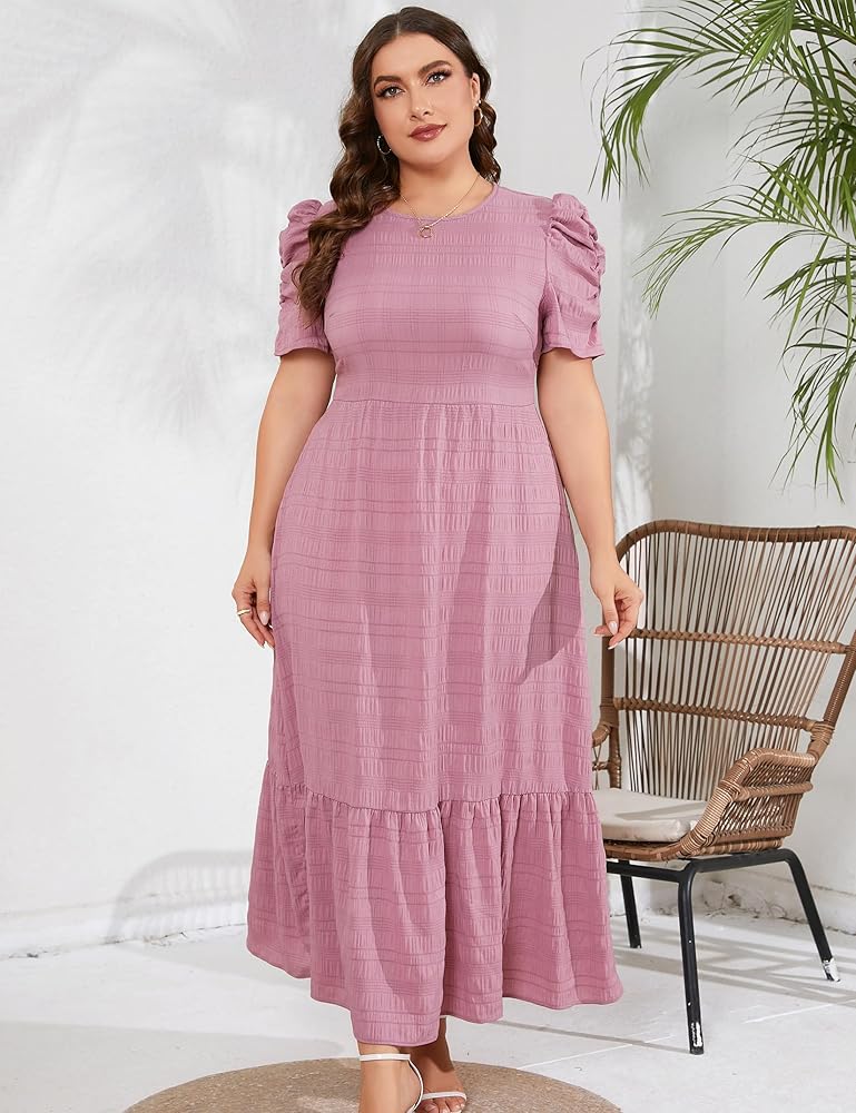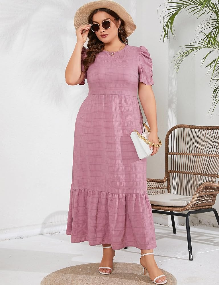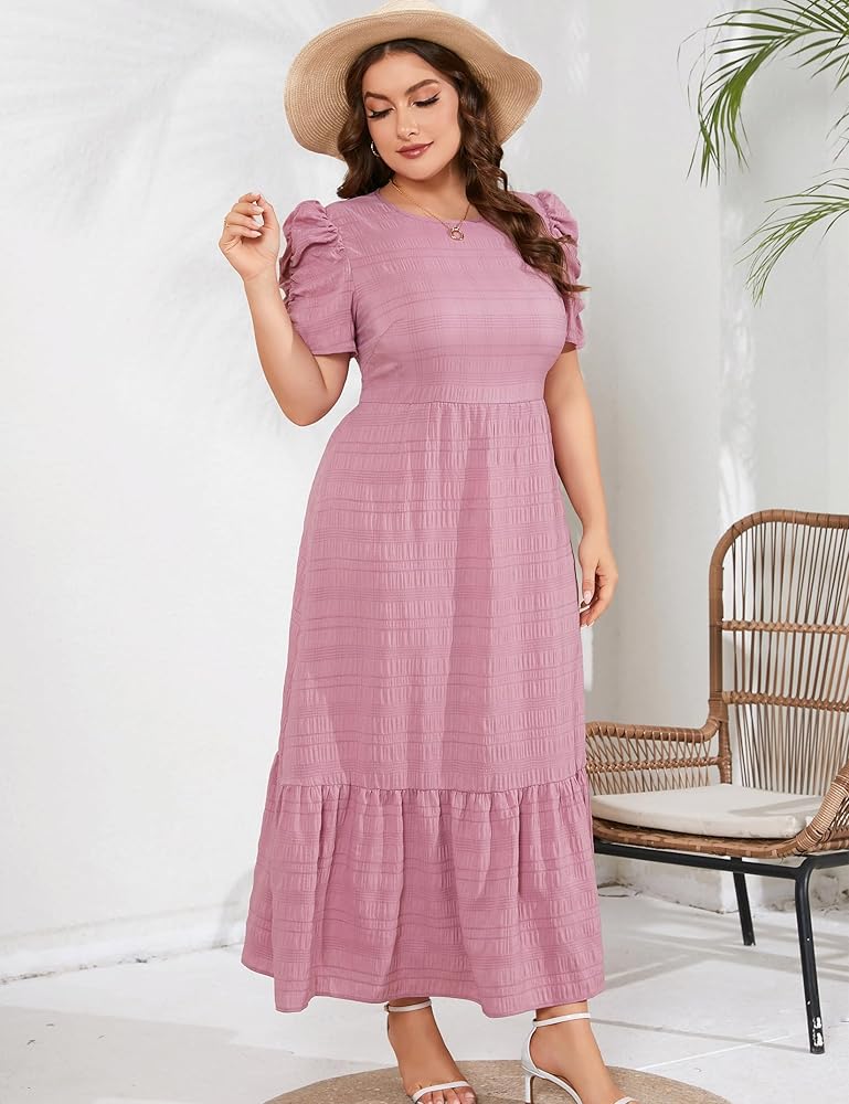 【المميزات】فساتين صيفية للنساء/ فستان طويل للنساء / فساتين ربيع للنساء / رقبة دائرية / أكمام منتفخة / حاشية مكشكشة / قماش مزخرف فريد / اختيار لون كلاسيكي / خط على شكل حرف A / خصر مرتفع